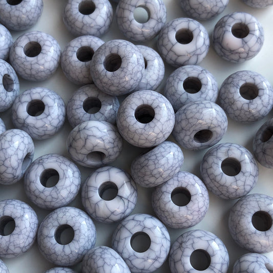 White Resin Marbled Macrame Beads 16x9mm Rondelle Donut Bead 20 Pieces