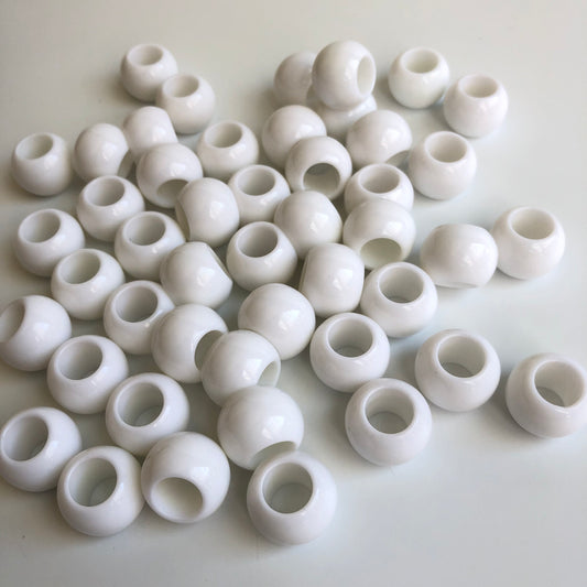 White Macrame Beads 18mm Round Barrel Plastic Resin Bead 10 Pieces