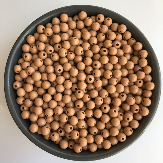 150X Tan Milk Brown Beads 6mm Round Plastic Resin Craft Bead