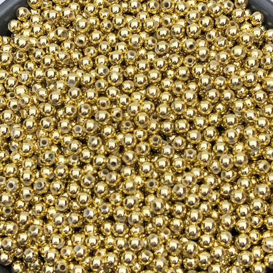 100X Gold Spacer Beads 4mm Round Acrylic Plastic Jewellery Making Bead