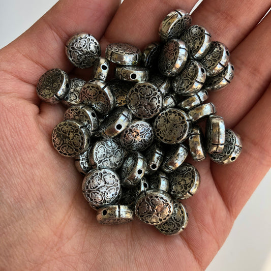 25X Antique Silver Spacer Beads 11mm Round Disc Acrylic Plastic Jewellery Making Beads