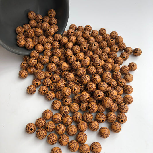 Tan Brown Plastic Beads 11mm Round GBP Imperial Pattern Craft Bead