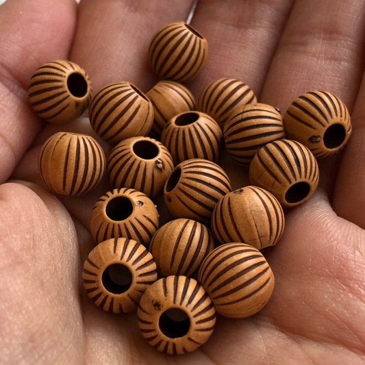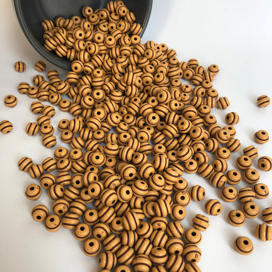 Tan Brown Acrylic Plastic Beads 9.5mm Round Corrugated Striped Bead 100 Pieces