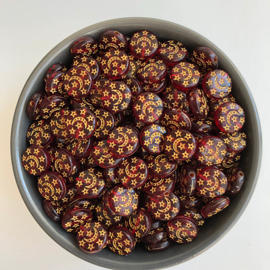 25 Pieces Moon Star Beads Deep Red and Gold 12mmx4mm Maroon Round Disc Jewellery Craft BeadRegular price $4.95 AUDRegular priceUnit price per-