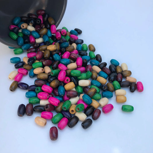 Mixed Wood Bead 12x8mm Oval Barrel Shaped Craft Beads 100 Pieces