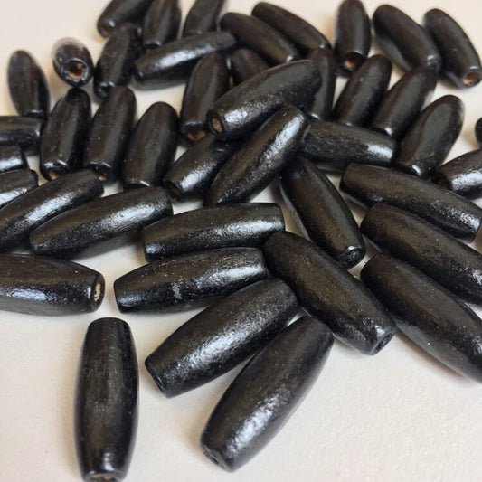 Black Wood Beads 23x8mm Long Oval DIY Necklace Making Wooden Bead 25 Pieces