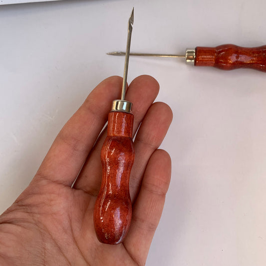Awl with Wooden Handle Sewing Stitching Leather Tool - 1pcs