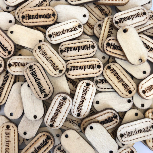 20X Handmade Wood Tags 22x11mm Laser Engraved Raw Wooden Label Link Button Sewing Scrapbooking