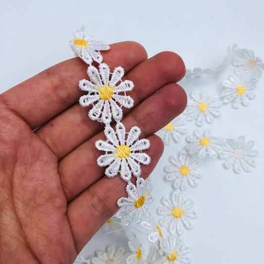 Daisy Flower Crochet Lace Trim White Floral Embroider Dress Trimming Tassel Applique Motif DIY Sewing Craft 1 Yard 90cm