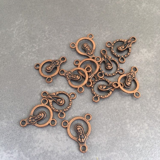 Rosary Charms 5X Pieces Antique Copper Metal Pendant Charms Virgin Mary Jesus Christ Pendants - 15x12mm Tri-Pendant