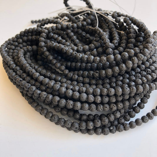 Black Lava Rock Beads 4mm Round Natural Mineral Gemstone Bead 90 Piece Strand