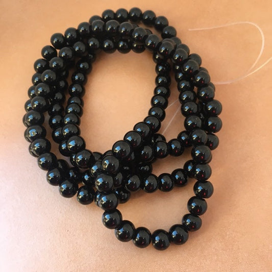 Black Glass Beads 6mm Round DIY Bracelet Necklace Making Bead 135 Piece Strand