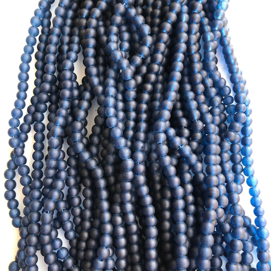 Navy Blue Frosted Glass Beads 6mm Round DIY Bracelet Necklace Bead 135 Piece Strand