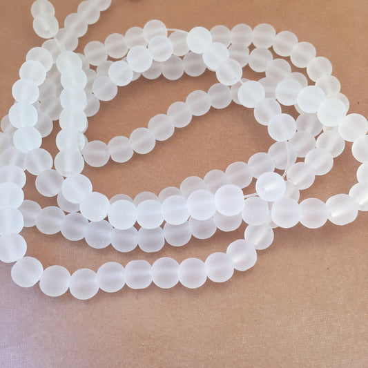 Clear White Frosted Glass Beads 6mm Round DIY Jewellery Making Bead 135 Piece Strand