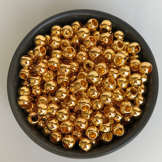 50X Shiny Gold Macrame Beads, 10x8mm Hair Pony Bead, Seamless Acrylic Craft Jewellery Making Bead
