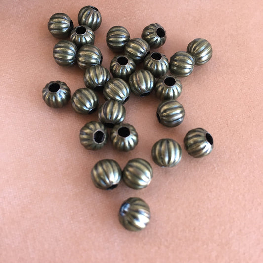 Bronze Metal Beads 5mm Round Corrugated Iron Pumpkin Spacer Bead 100 Pieces