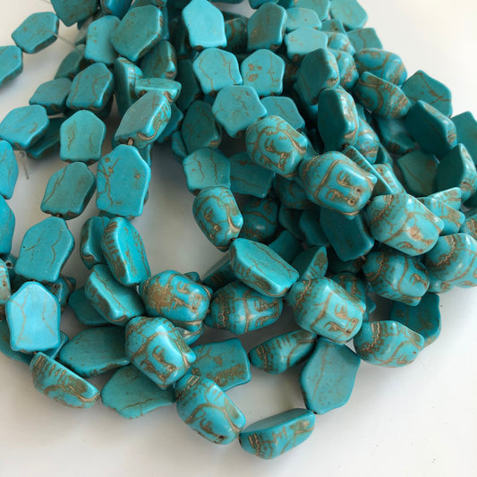 Buddha Head Charm Bead 20mm x 15mm Turquoise Blue Stone 19pcs Guanyin Carved Gemstone Beads