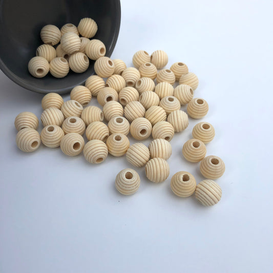 Natural Unpainted Spiral Wood Beads 15mm Round Beehive Shape Craft Bead 20 Pieces