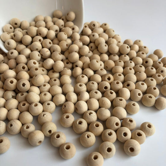 Natural Unpainted Beige Wood Beads 10mm Round Raw Unfinished Wooden Craft Bead 100 Pieces