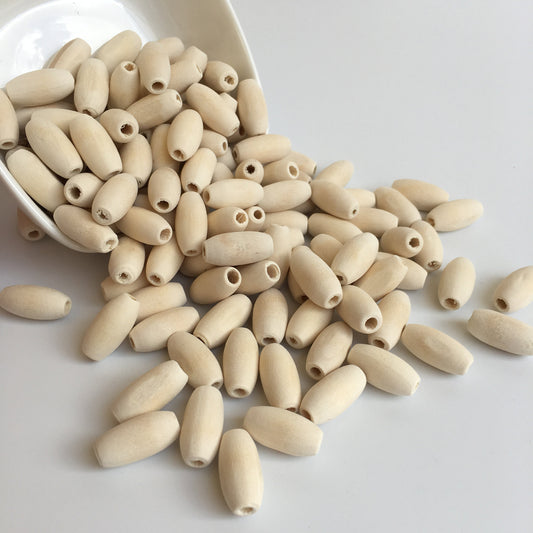 Natural Beige Unpainted Wood Beads 20x10mm Oval Wooden Craft Bead 25 Pieces
