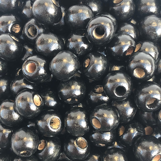 Matte Black Wood Beads 8.5mm Round Wooden Craft Bead 150 Pieces