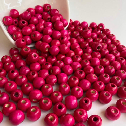 Hot Pink Wood Beads 16mm Round DIY Wooden Jewellery Craft Bead 25 Pieces