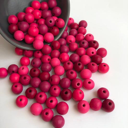 Mixed Matte Pinks Wood Bead 14mm Round Craft Beads 25 Pieces
