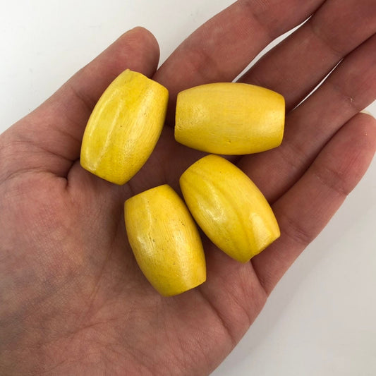 Big macrame beads, 30x20mm yellow large 10mm hole wood beads, big hole beads, oval drum shape macrame beads