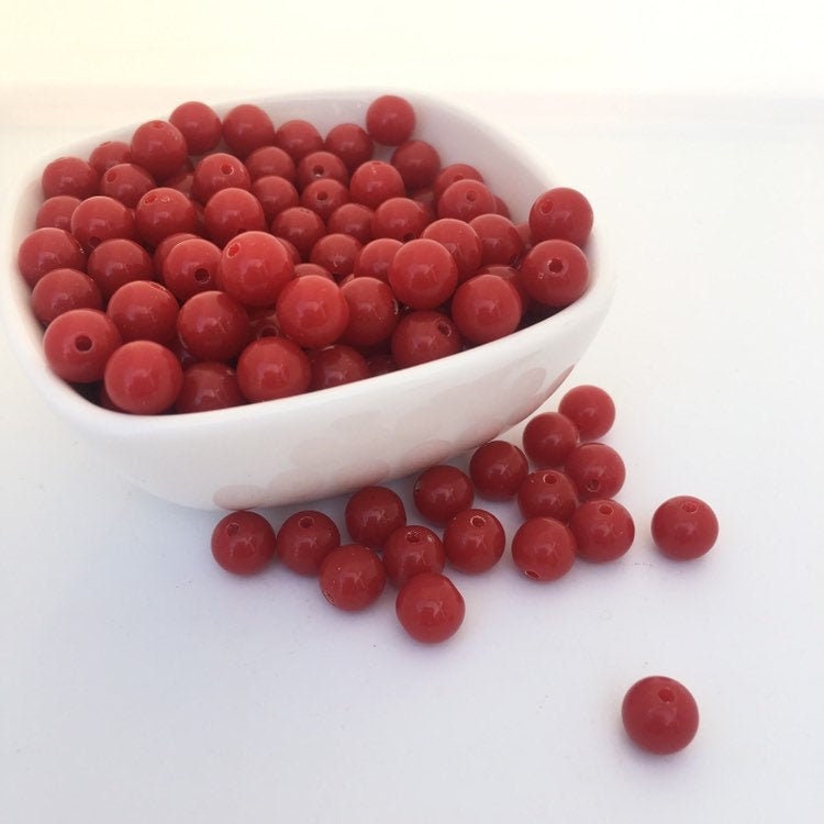 Red Round DIY Craft Beads, 8mm Acrylic Bead, Red Resin Beads