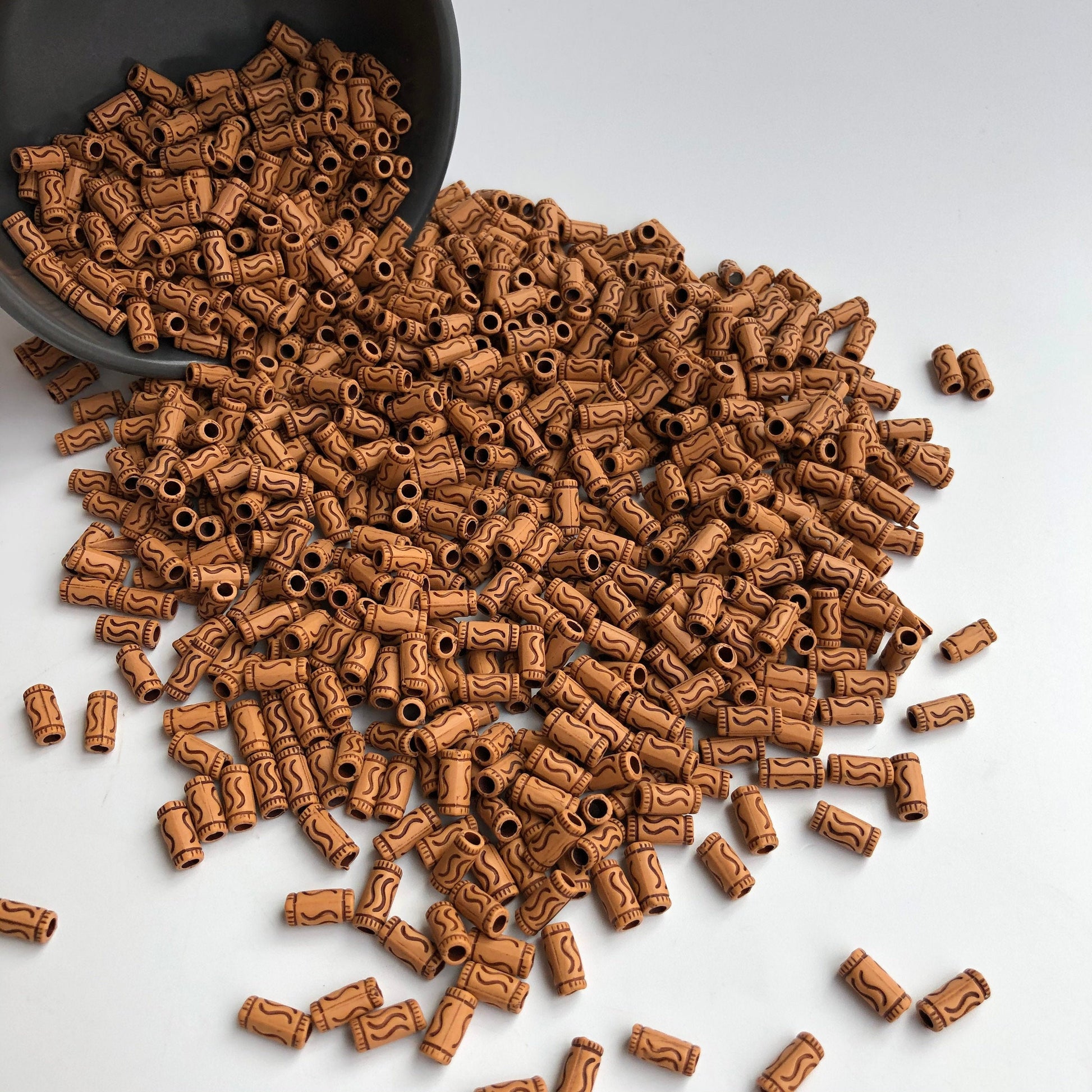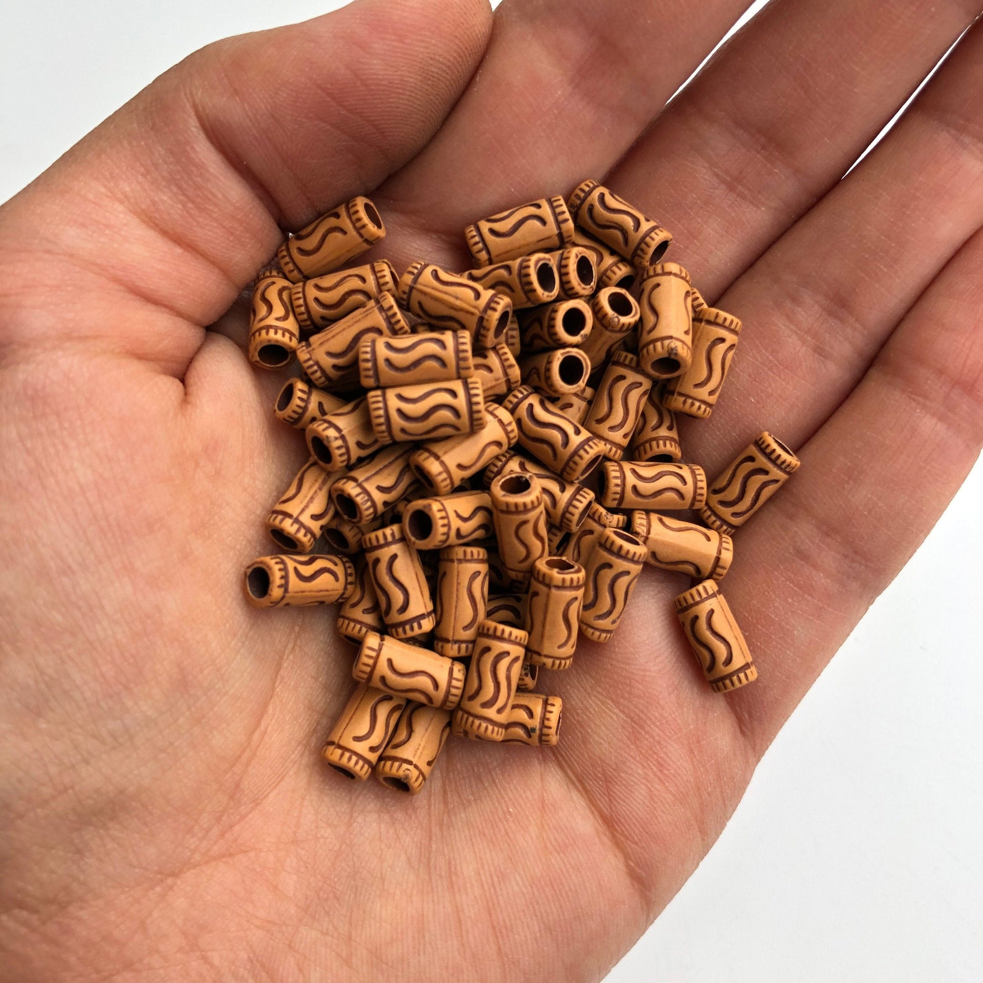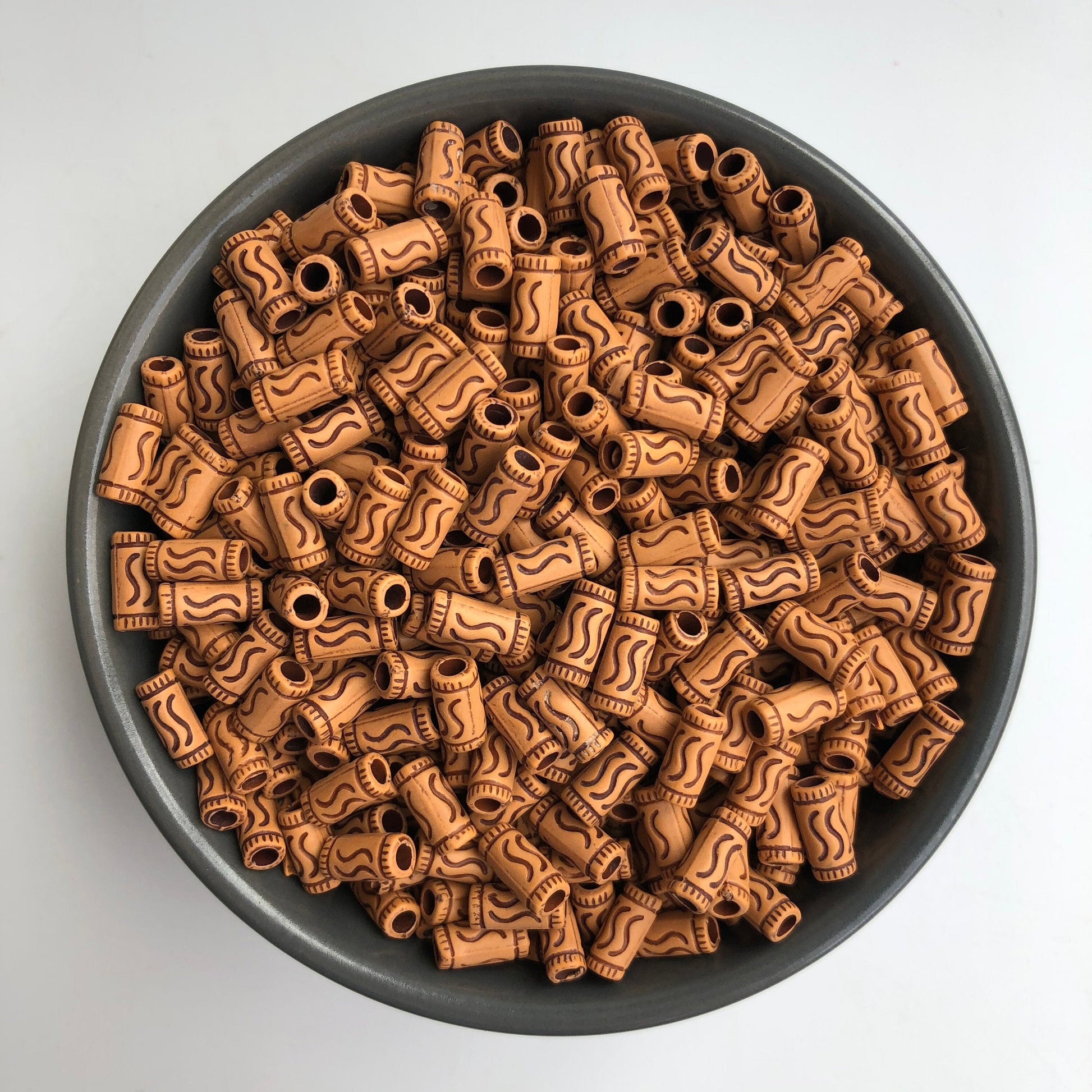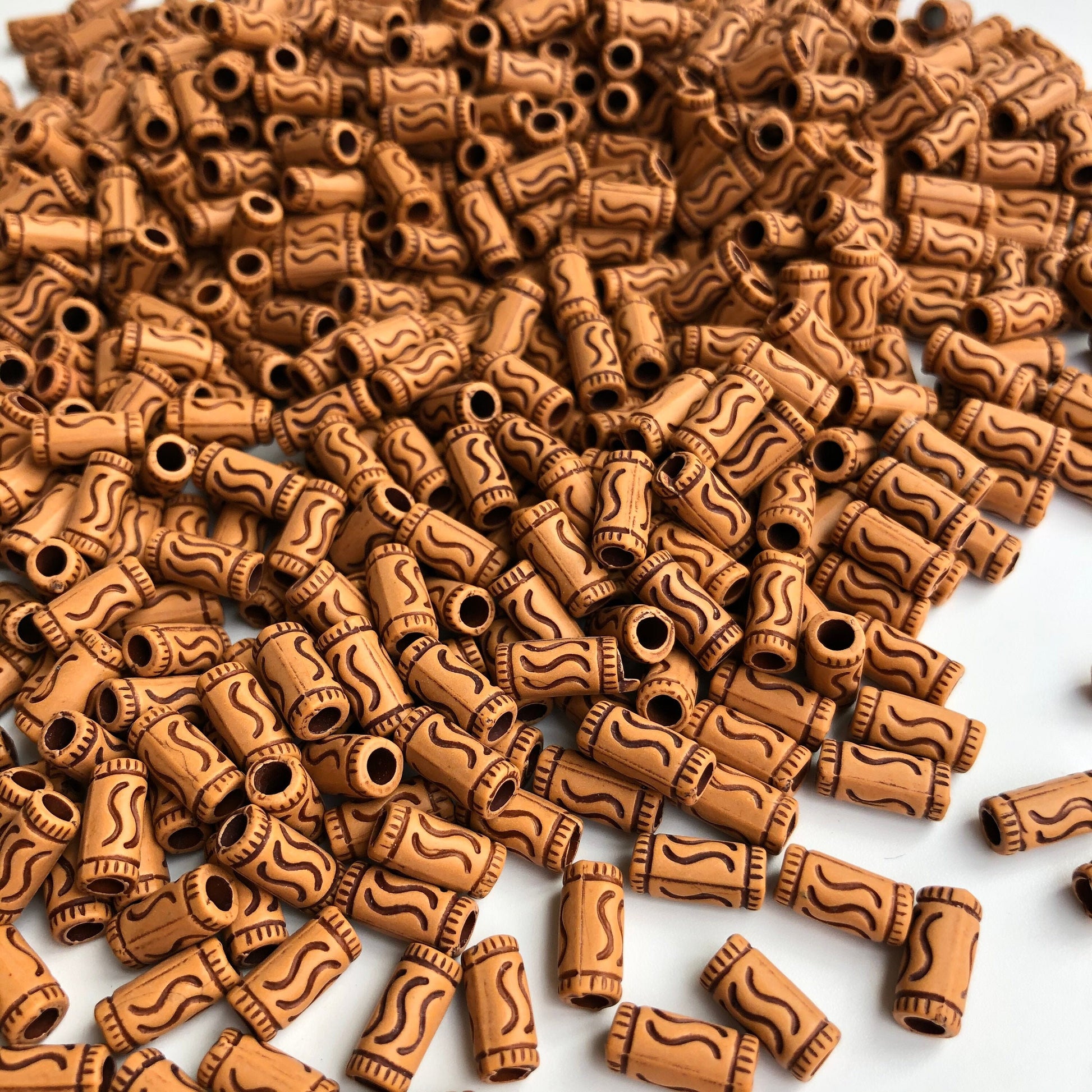 Tan Brown Tube Beads 10x5mm Plastic Tribal Pattern Column Bead 100 Pieces