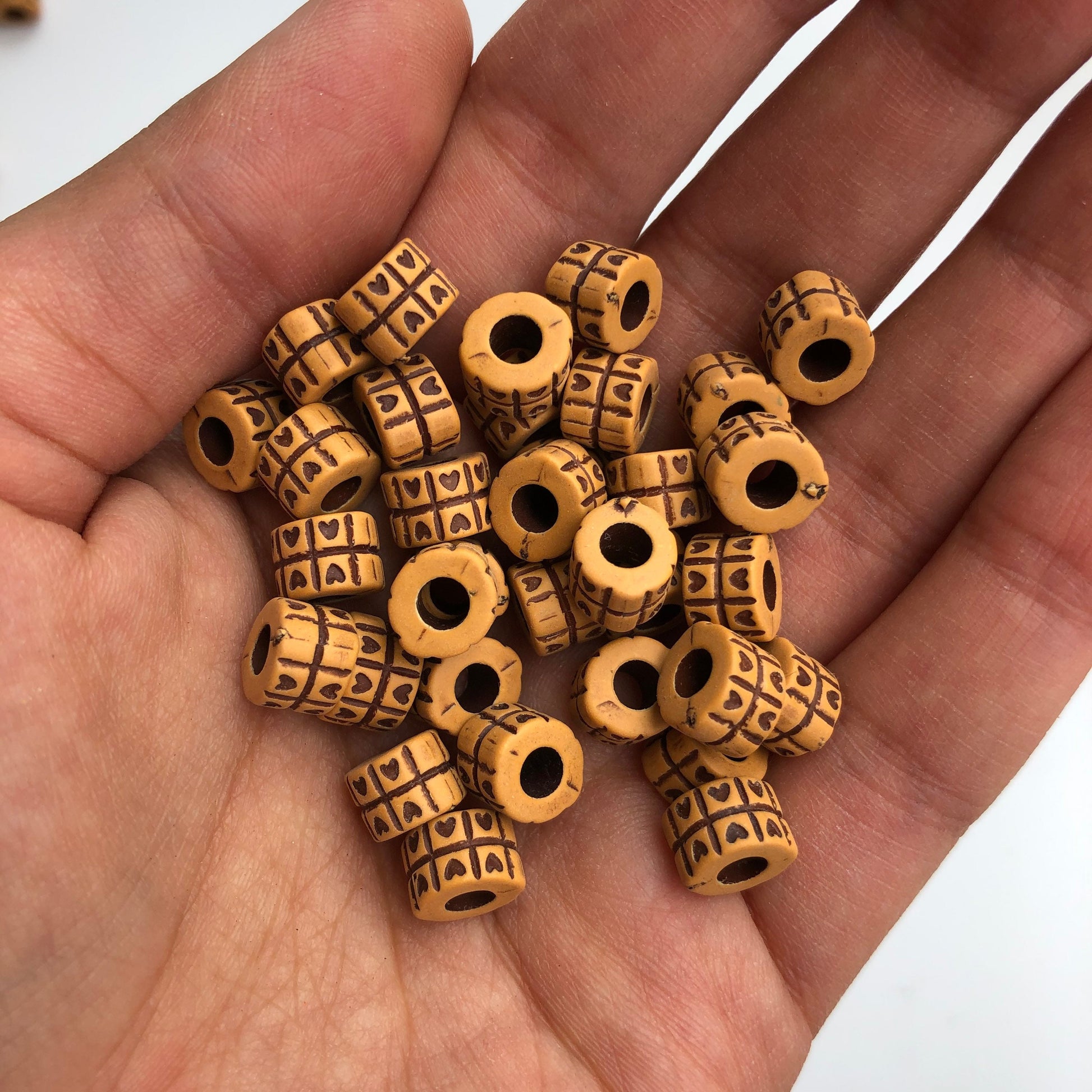 Tan Brown Plastic Beads 8x6mm Tube Love Heart Pattern Craft Bead 100 Pieces
