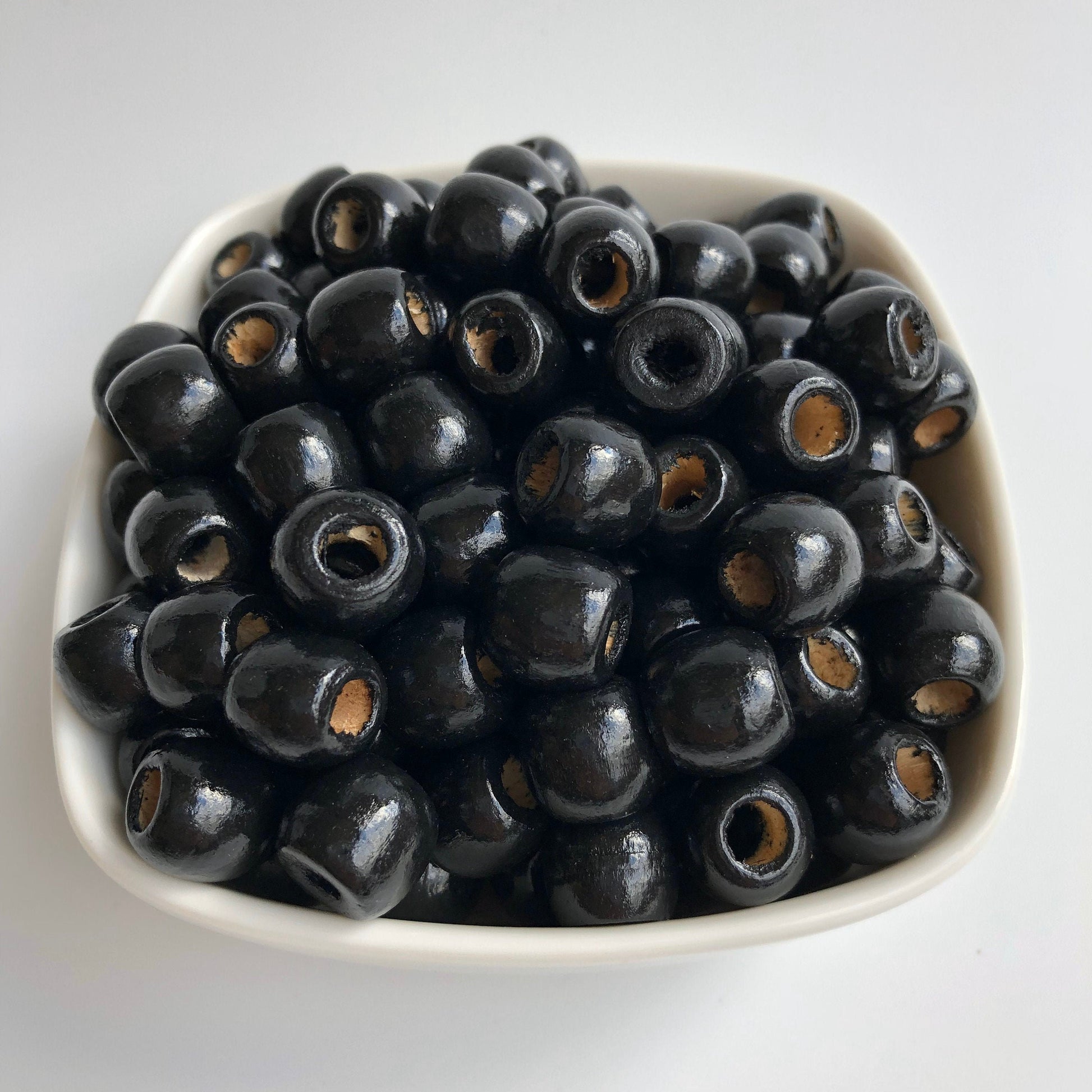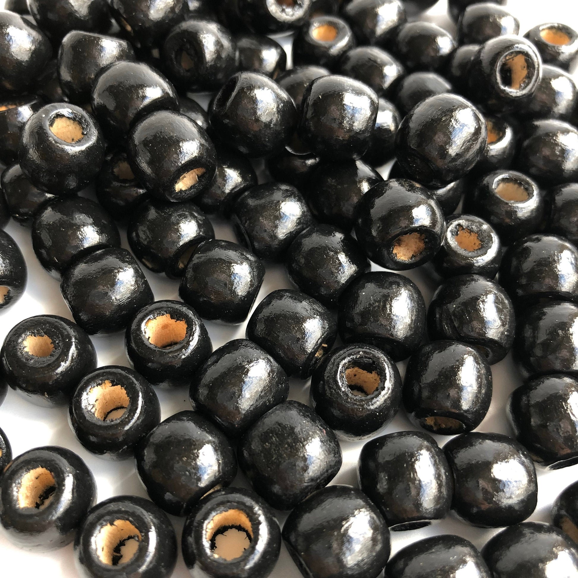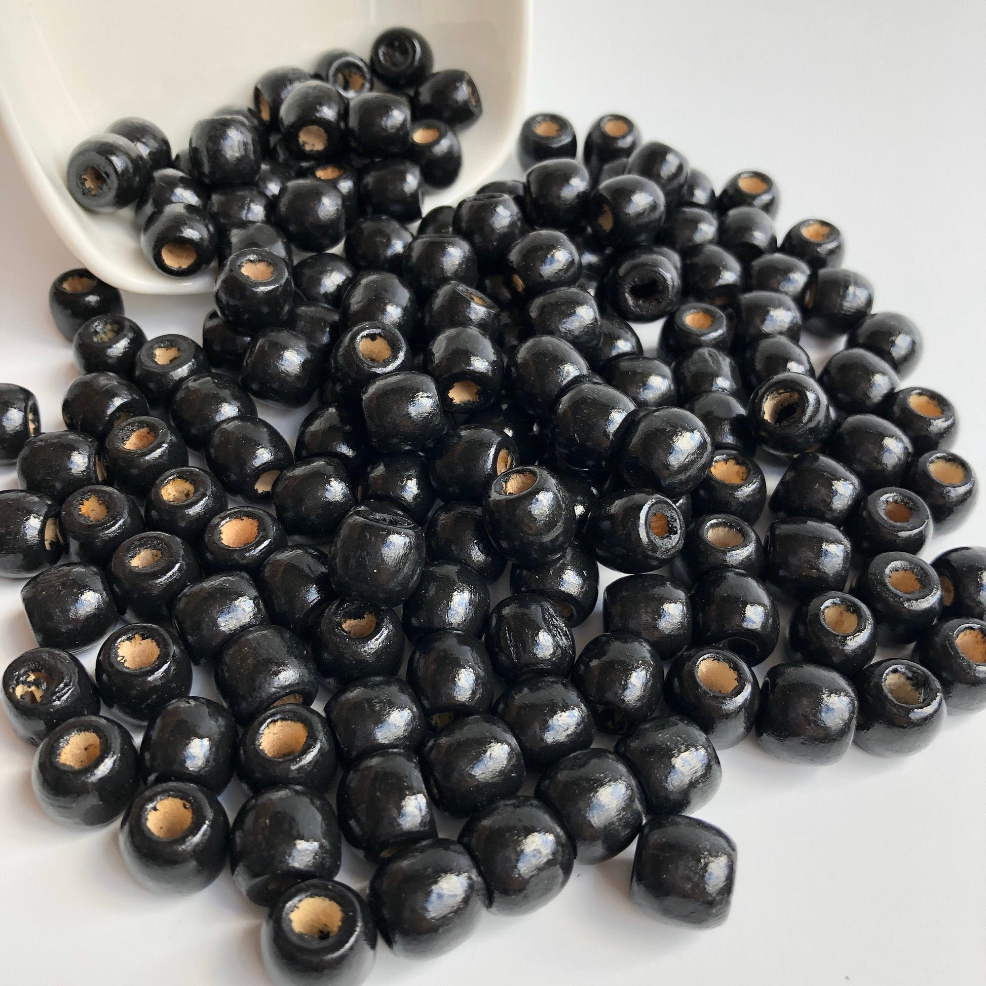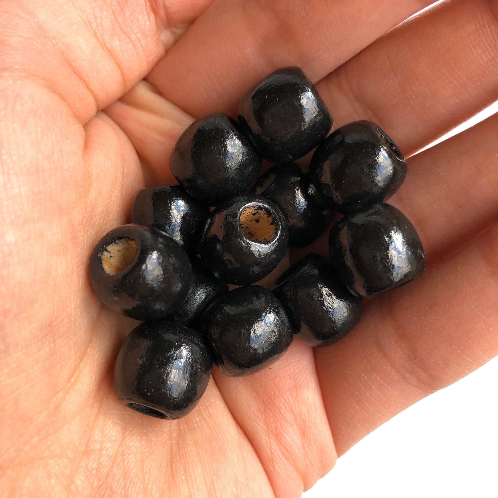 Black Macrame Beads 12mm Drum Barrel Wooden Dreadlock Pony Bead 50 Pieces