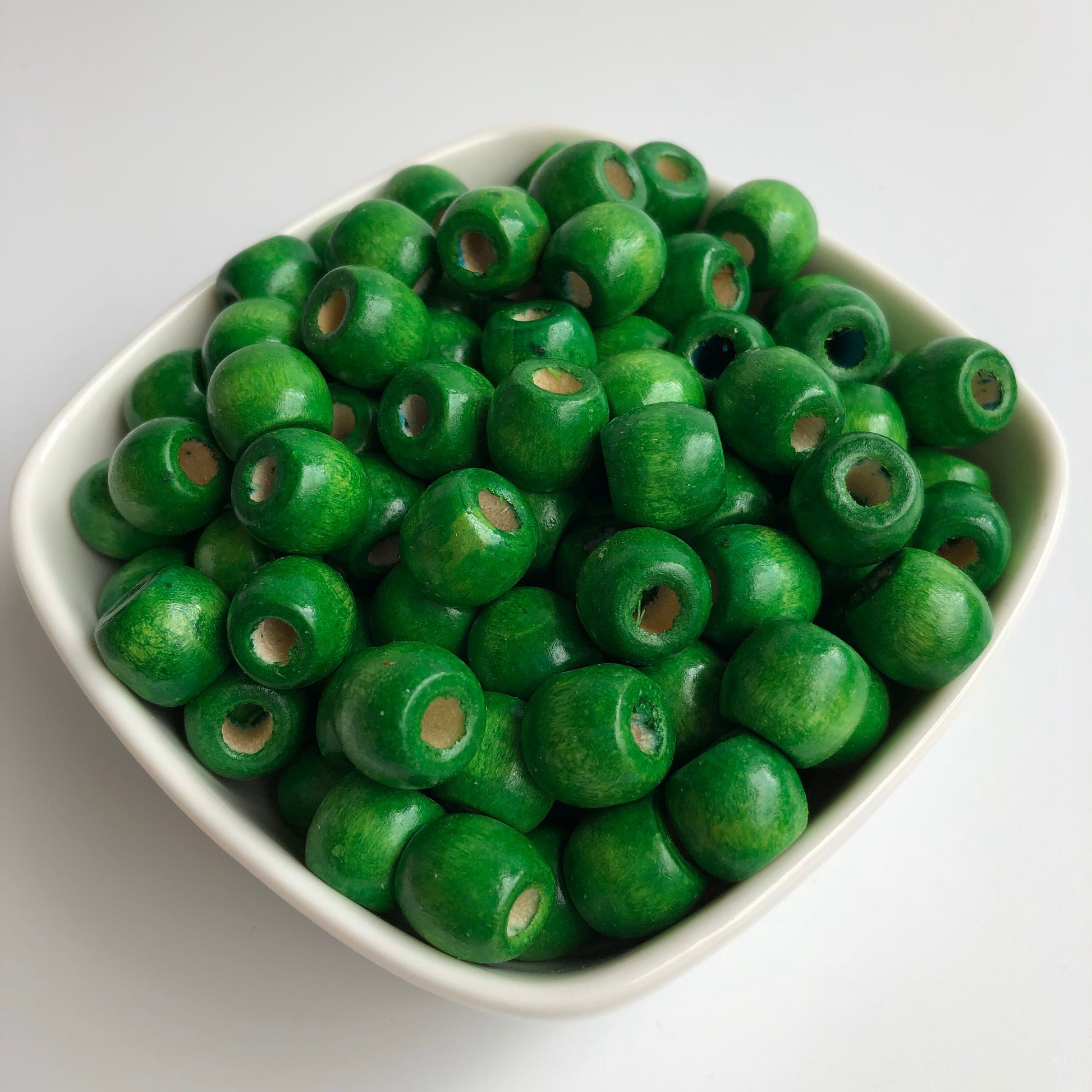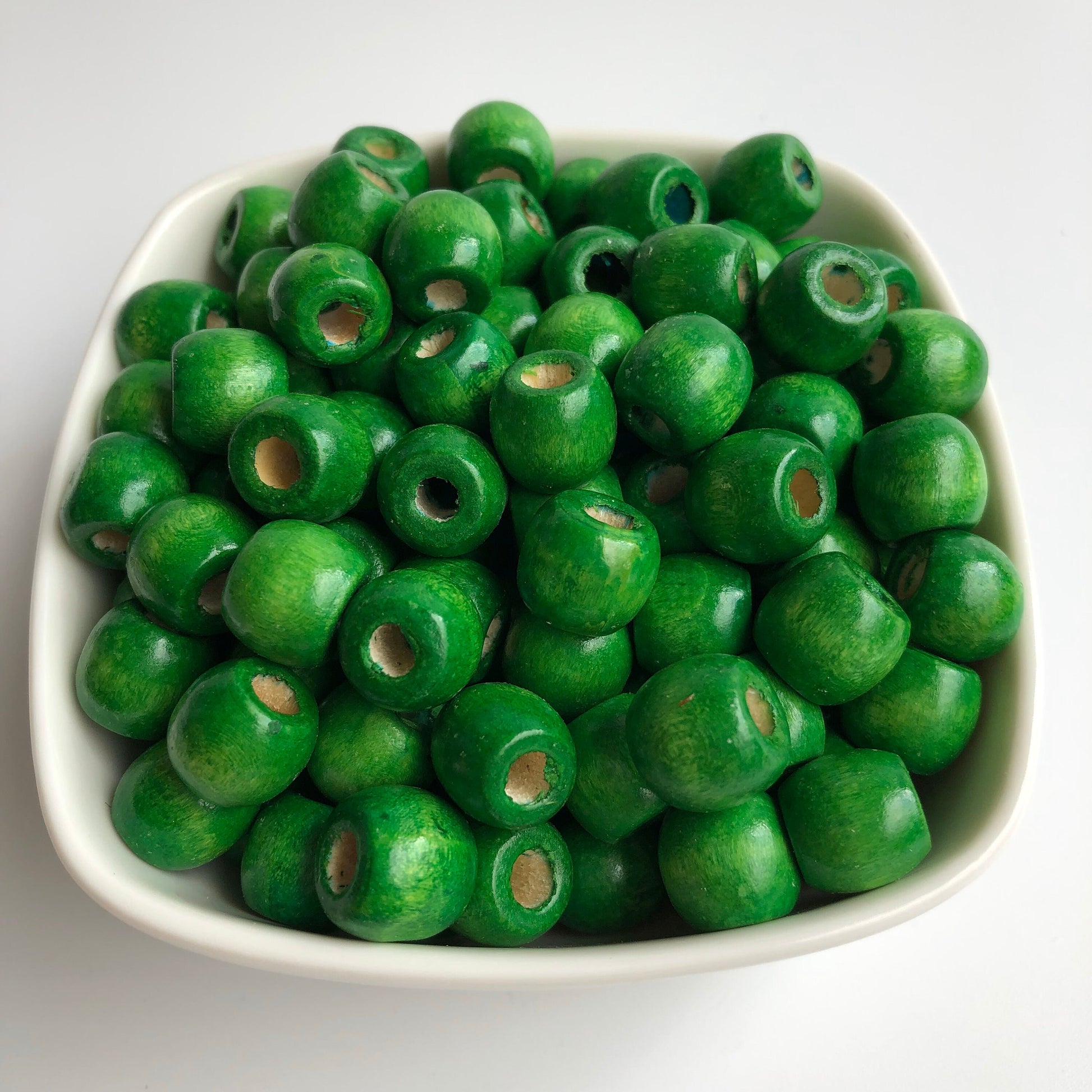Green Macrame Wood Beads 12mm Drum Barrel Wooden Dreadlock Pony Bead 50 Pieces