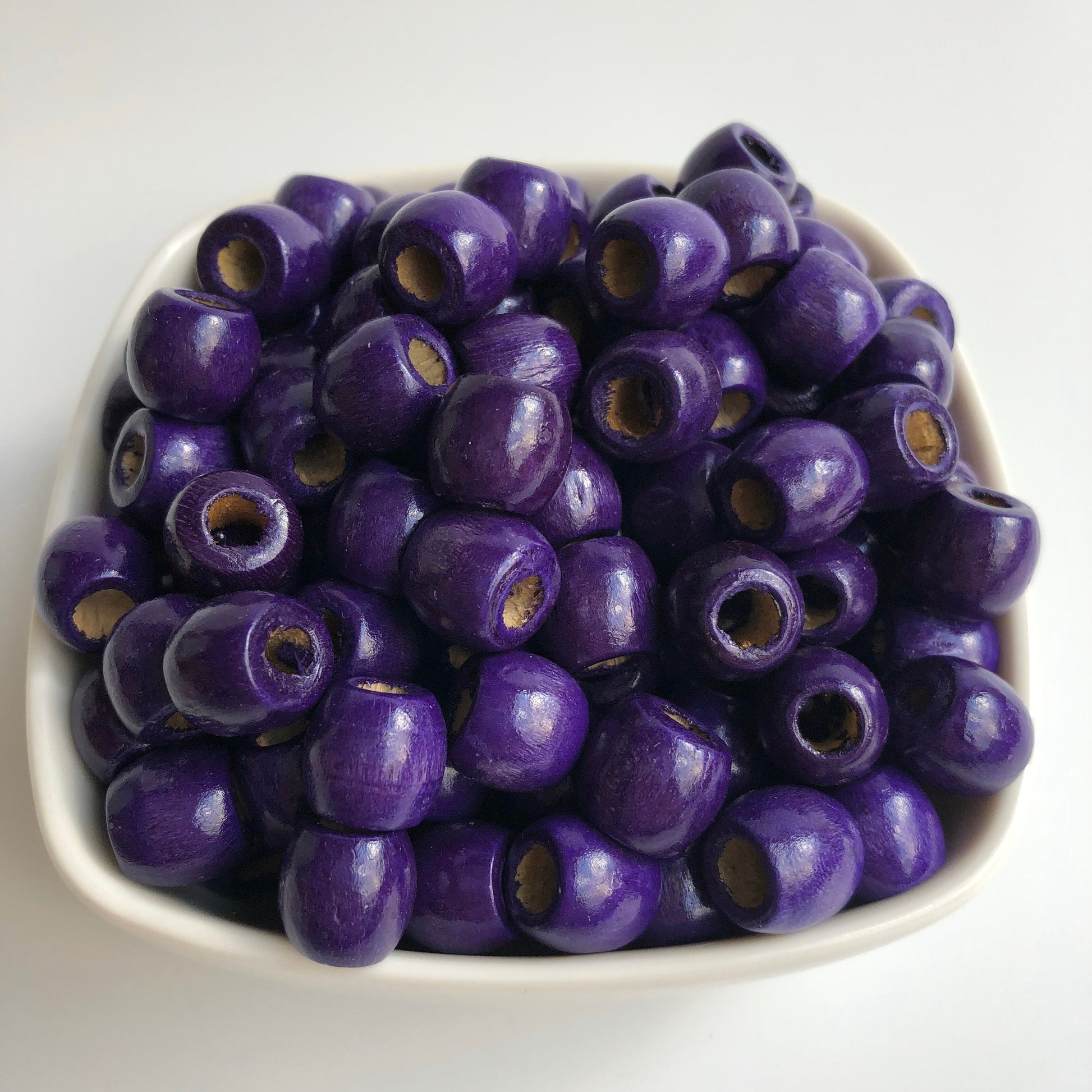 Purple Macrame Wood Beads 12mm Drum Barrel Wooden Dreadlock Pony Bead 50 Pieces