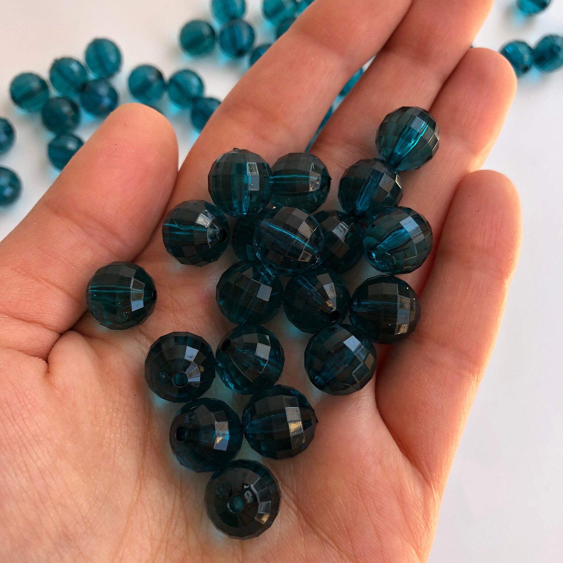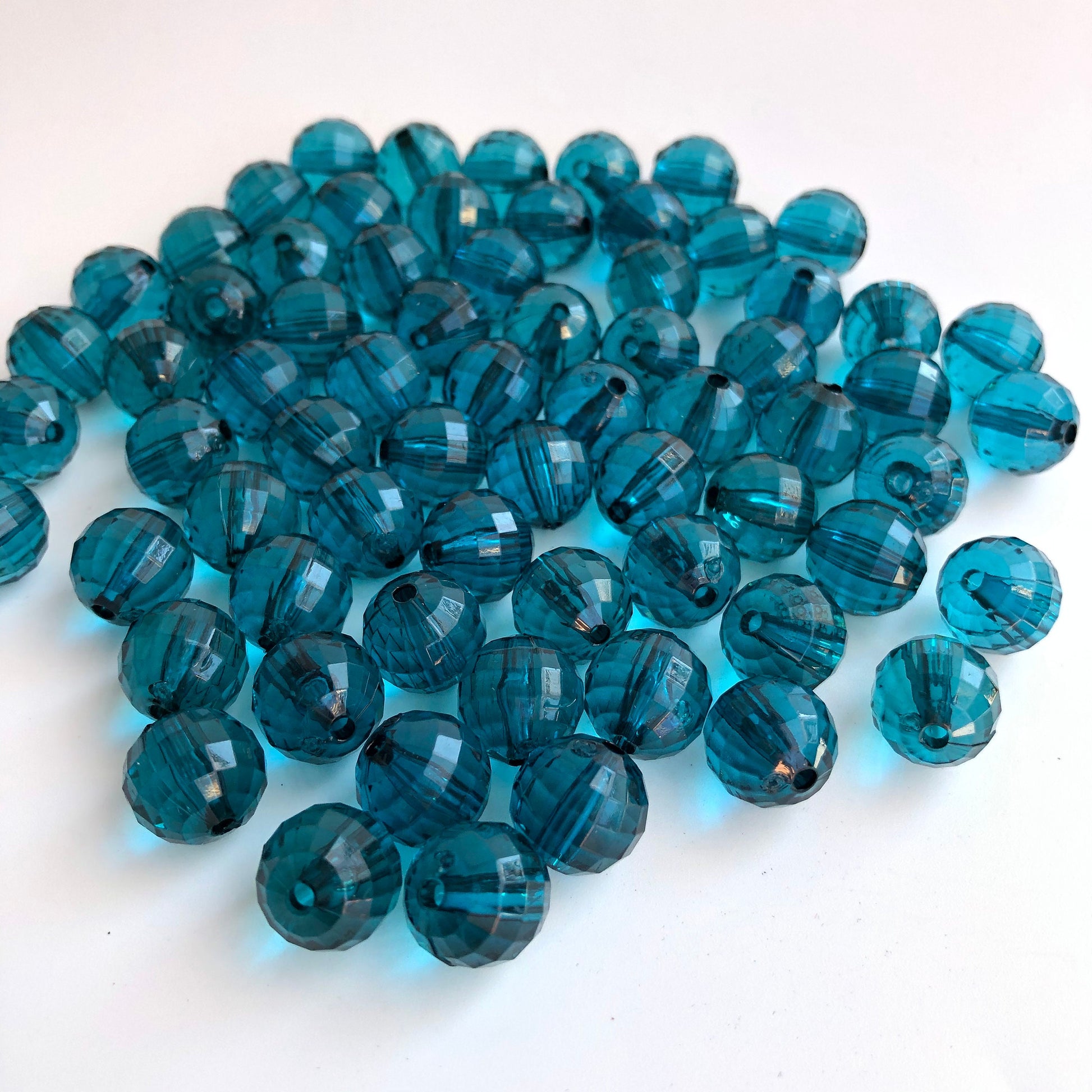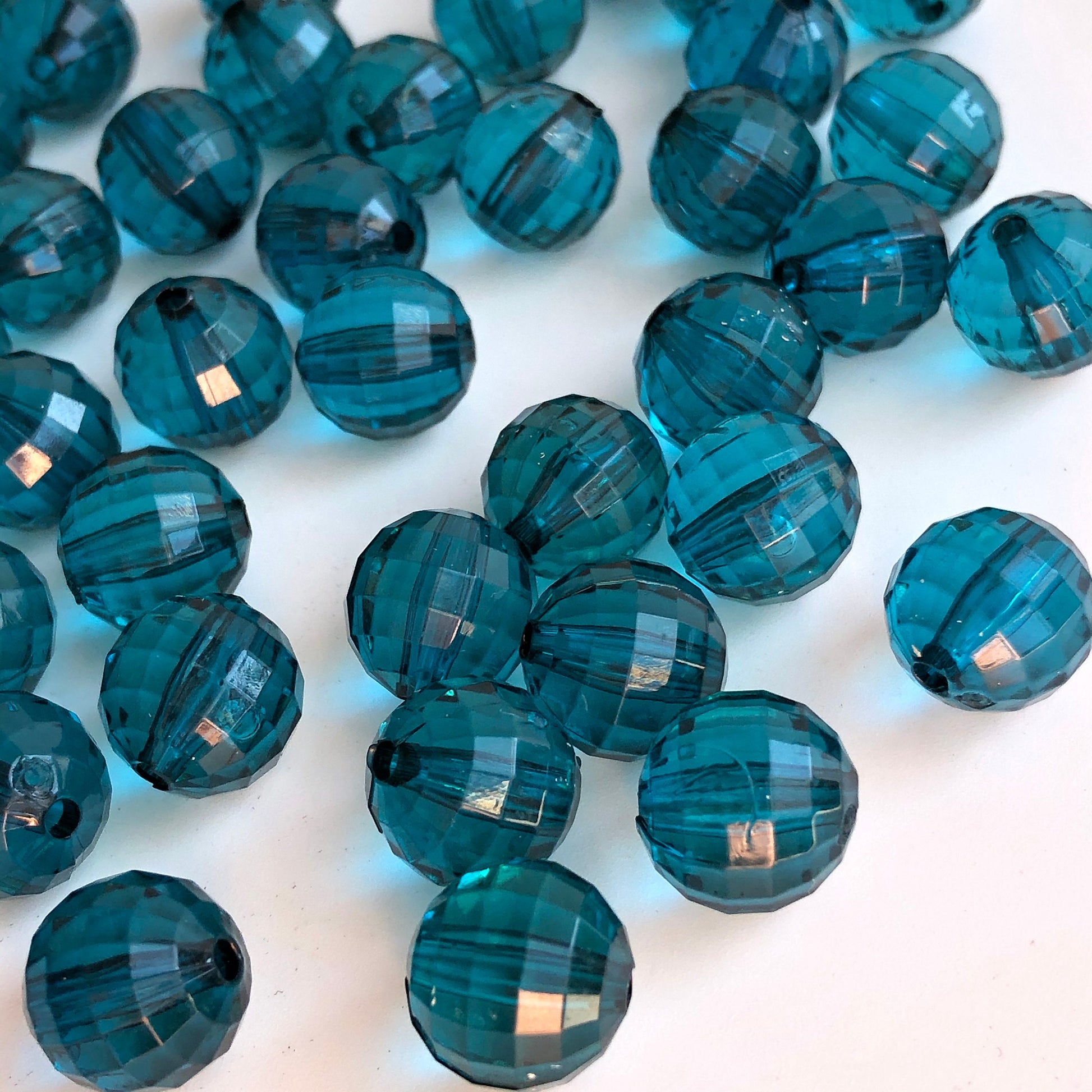 Teal Blue Resin Beads 12mm Round Faceted Disco Ball Jewellery Making Bead 25 Pieces