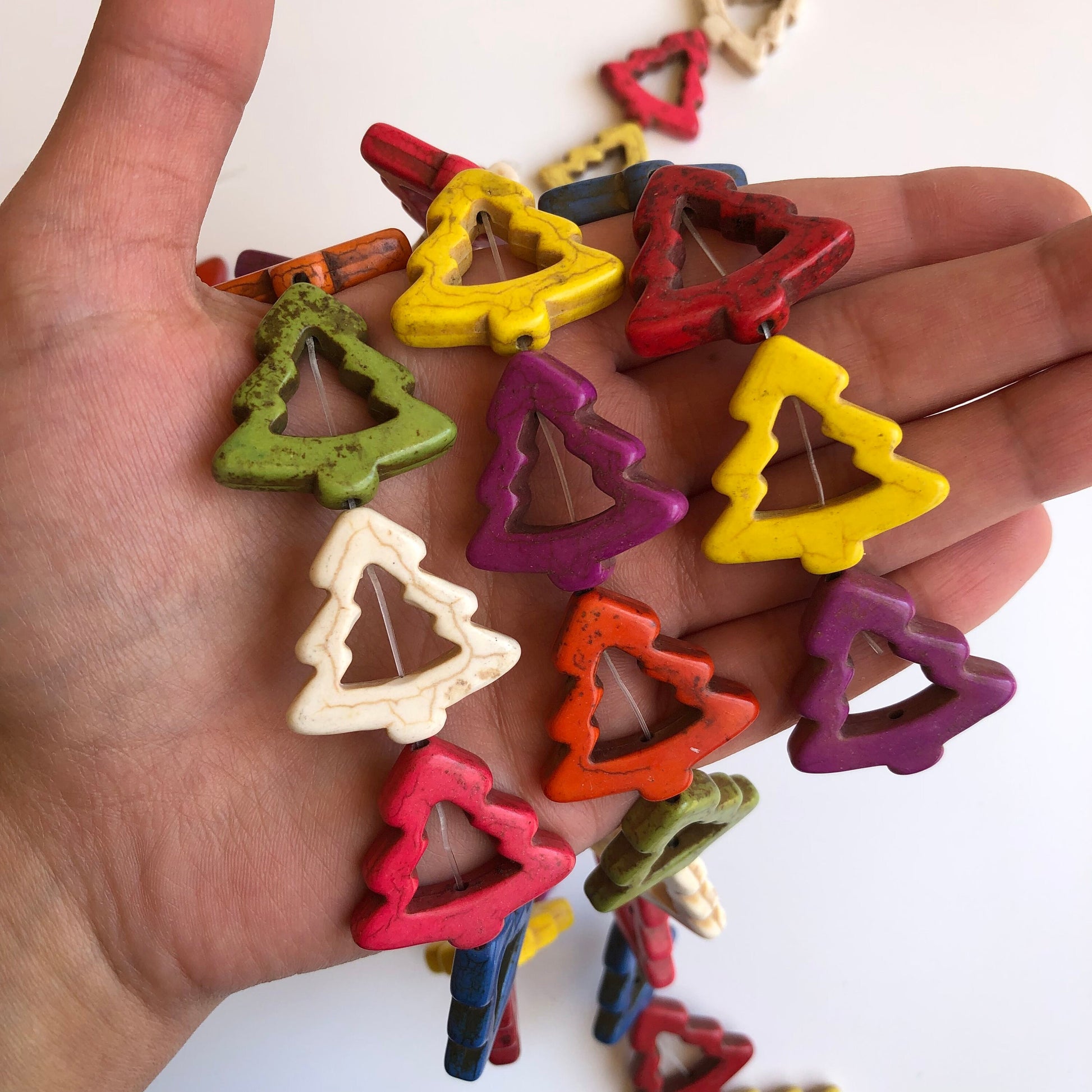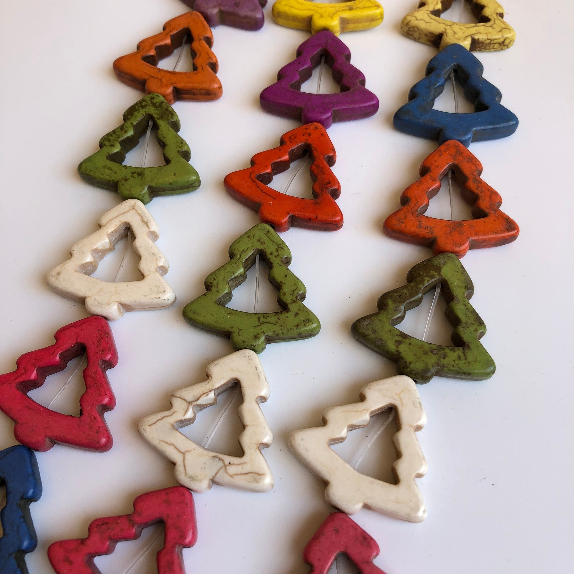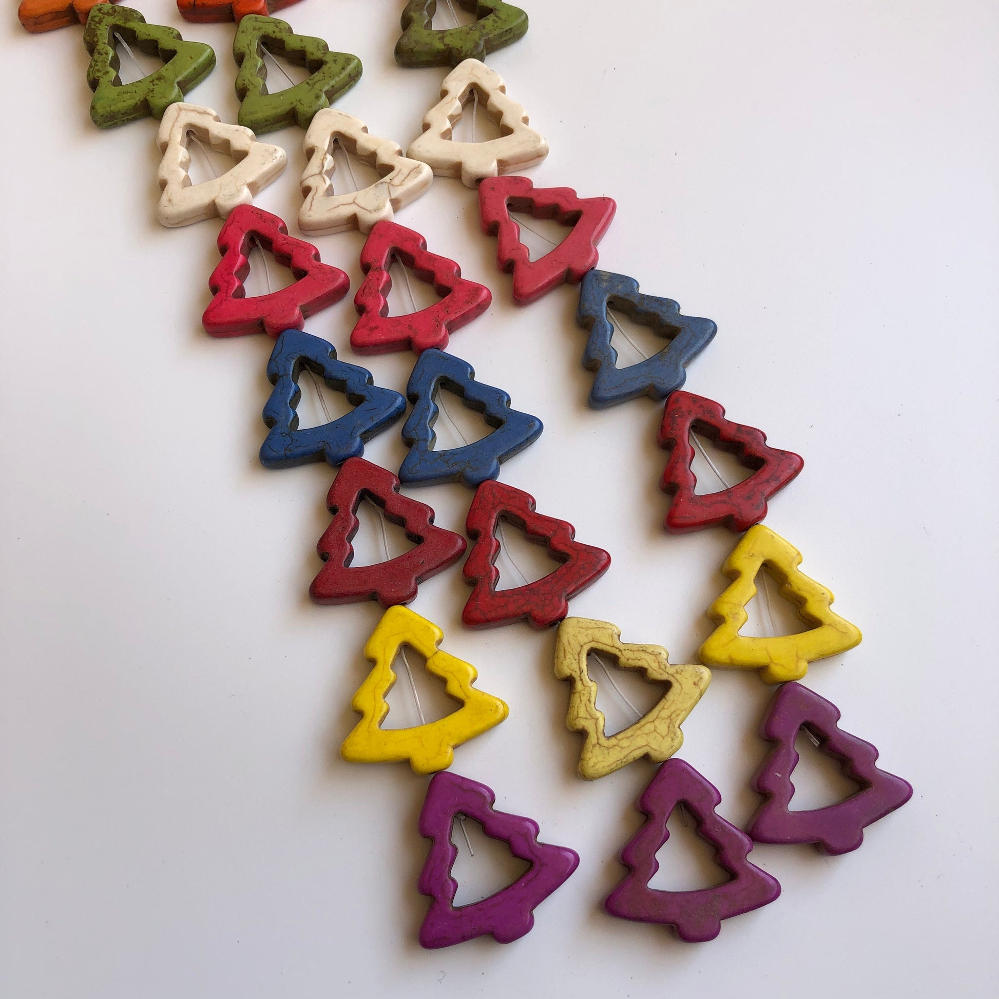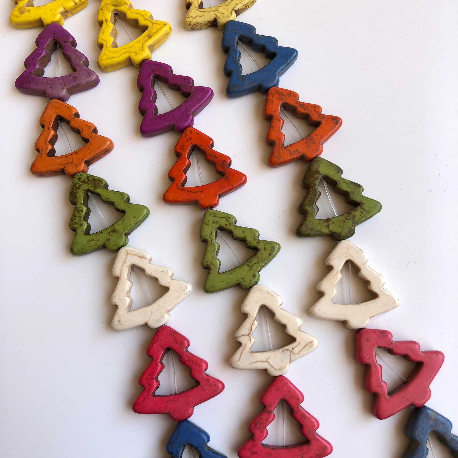 Mixed Multi Colour Christmas Tree Bead Frames 30mm Synthetic Gemstone Window Frame Beads 12 Piece Strand