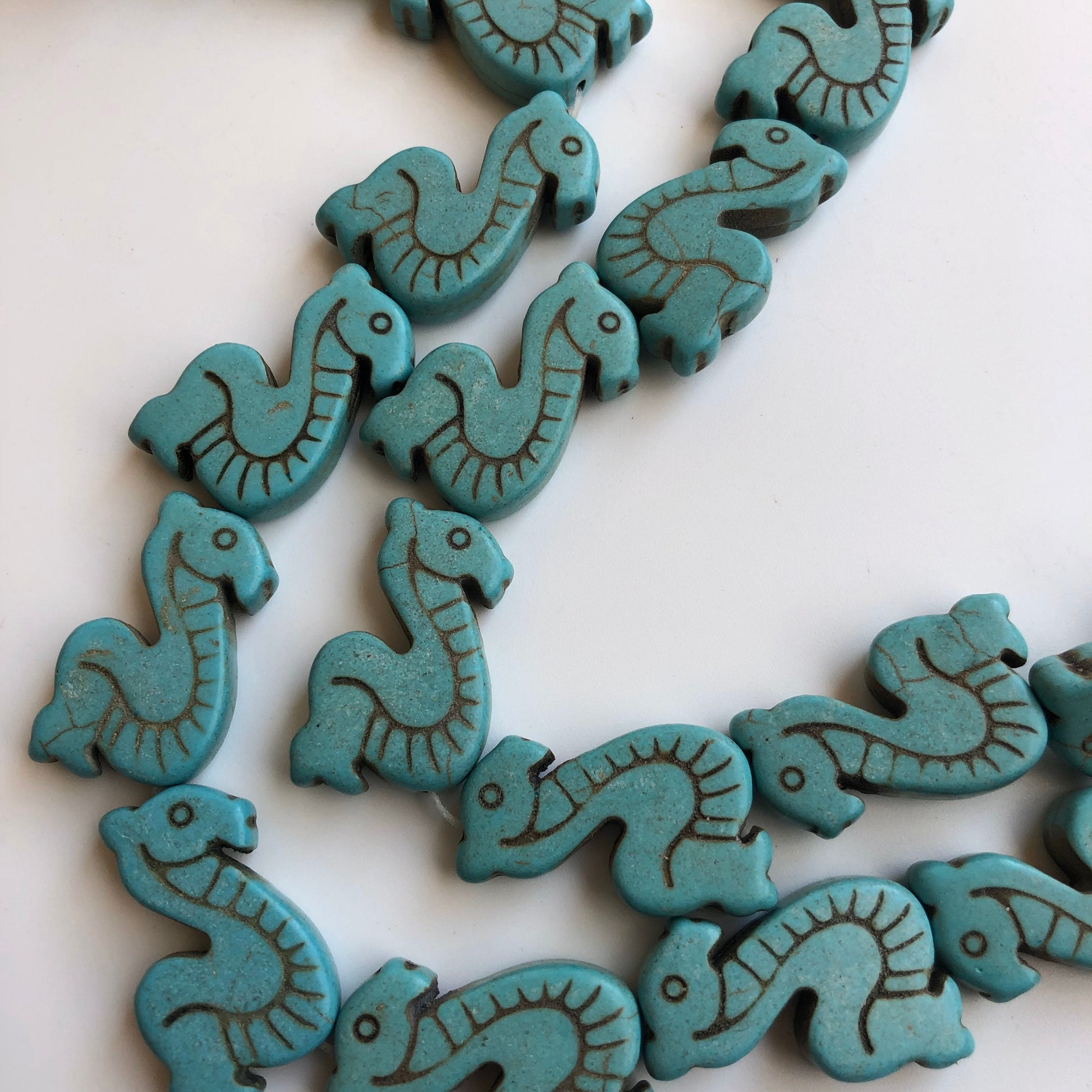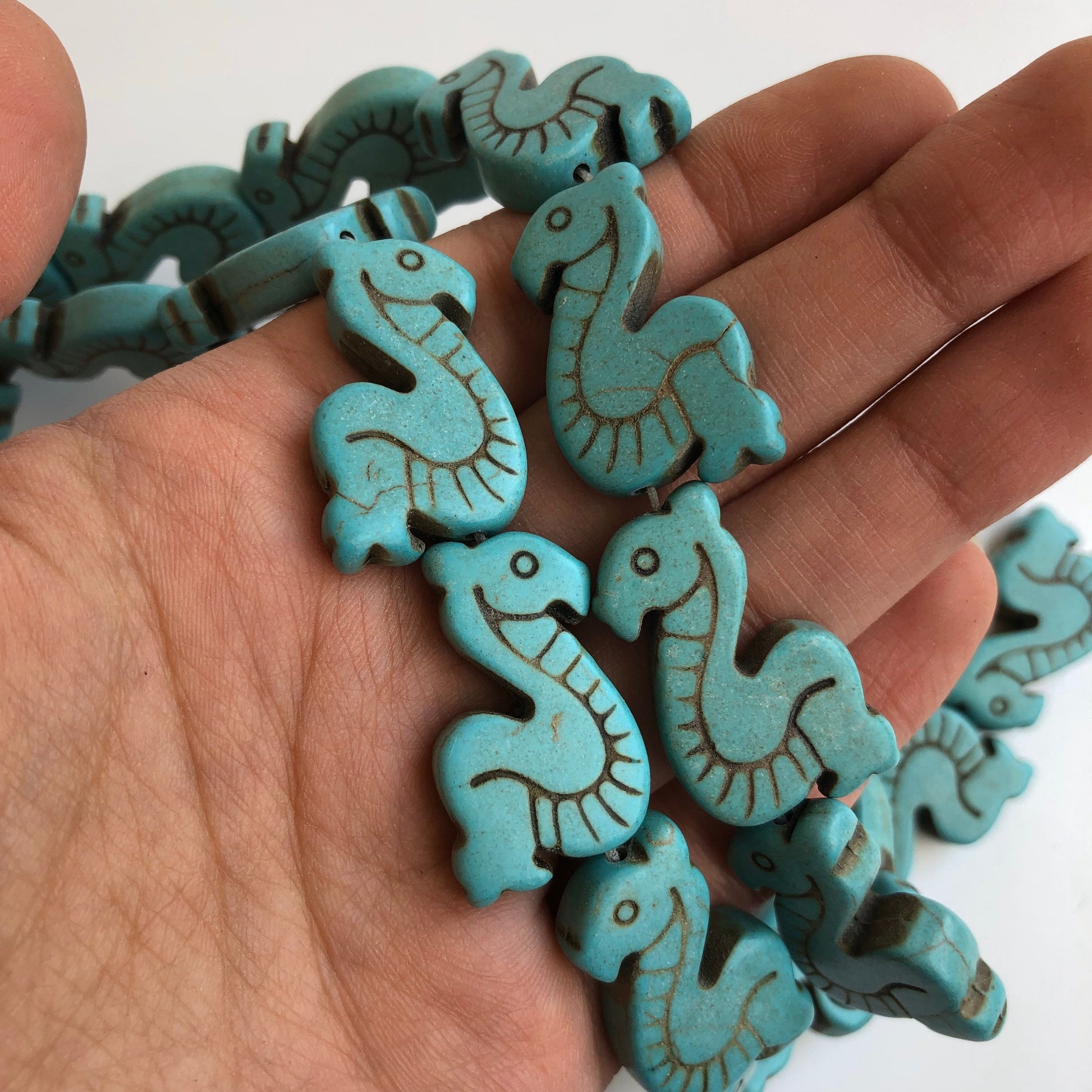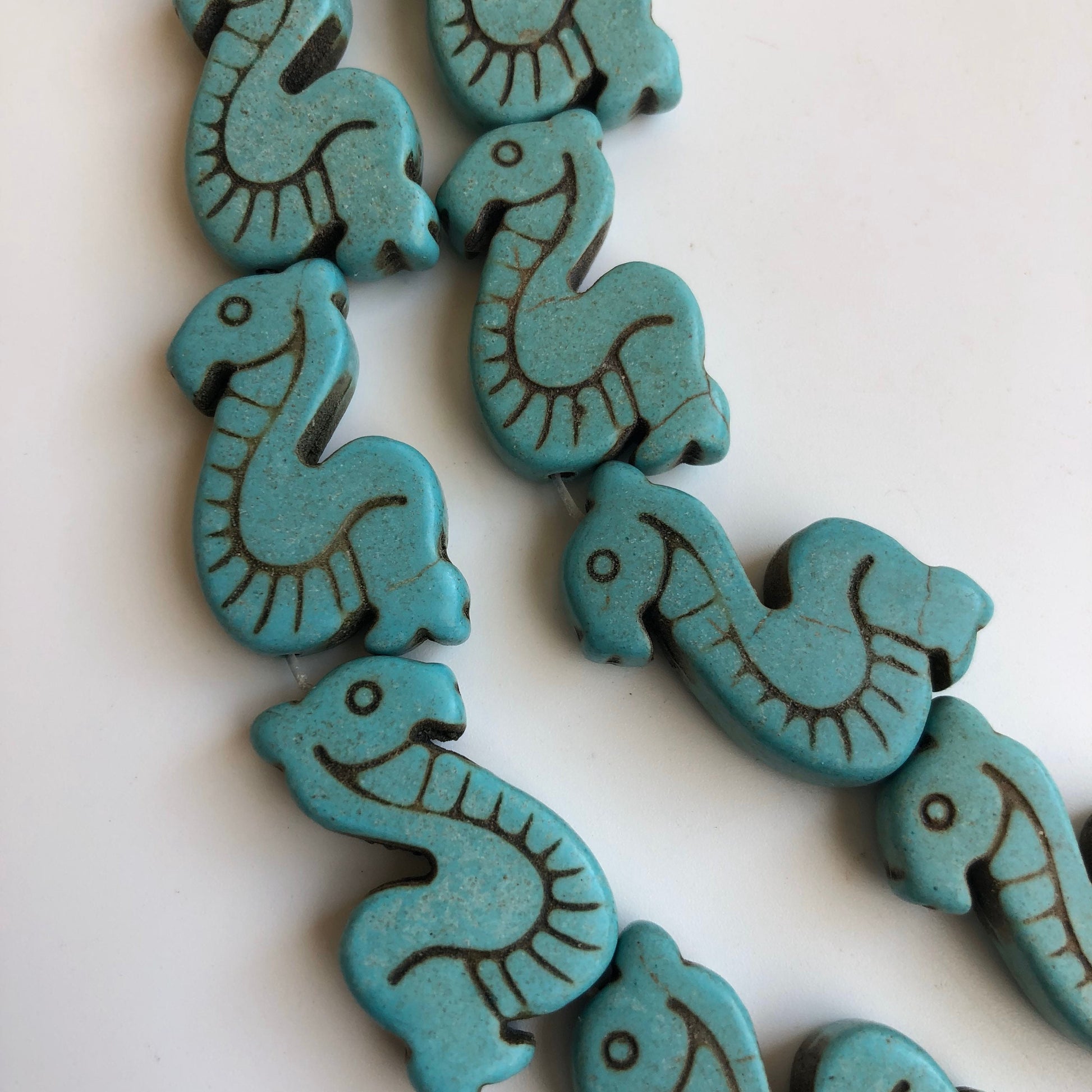 Turquoise Blue Seahorse Beads 29x17mm Synthetic Gemstone Bead 13 Piece Strand
