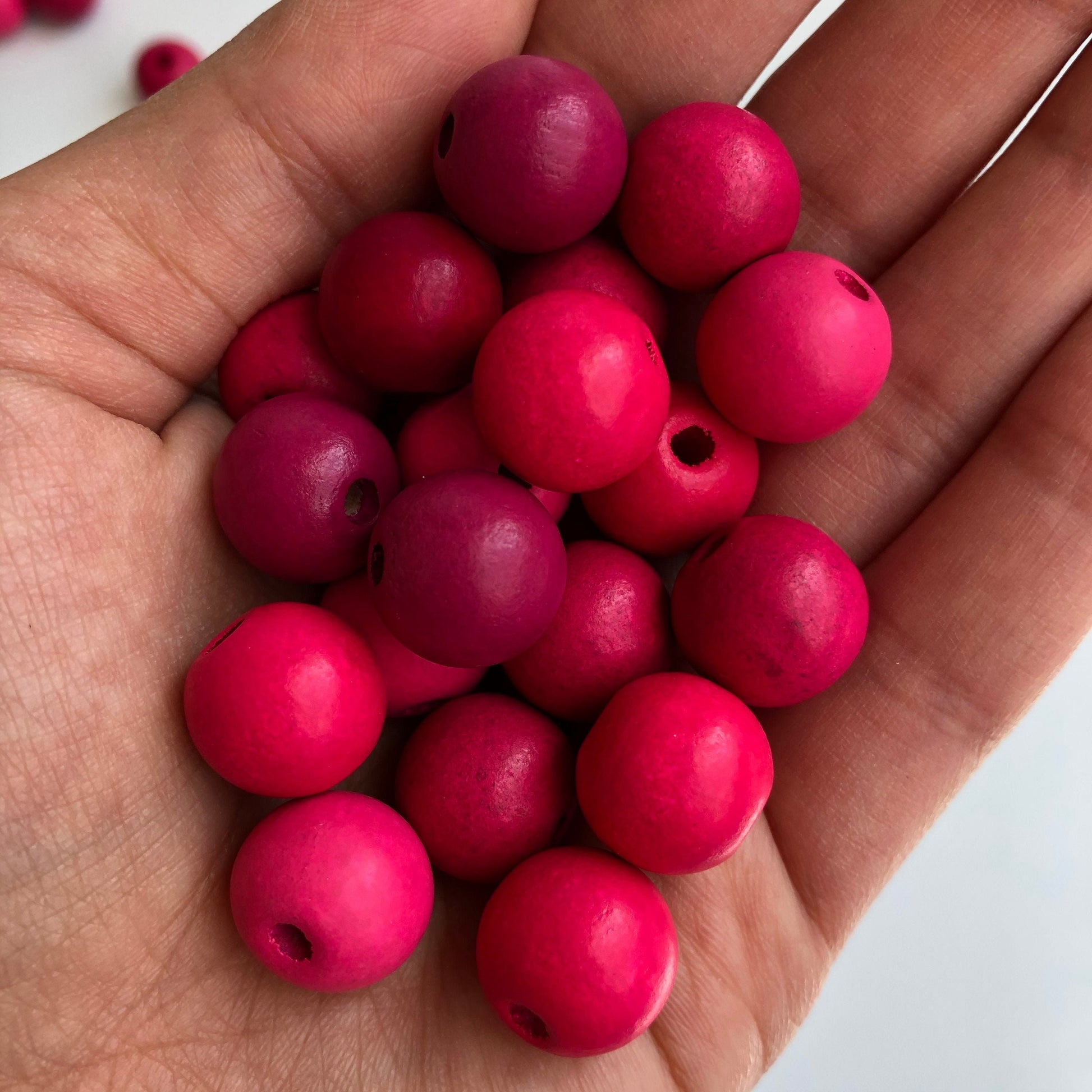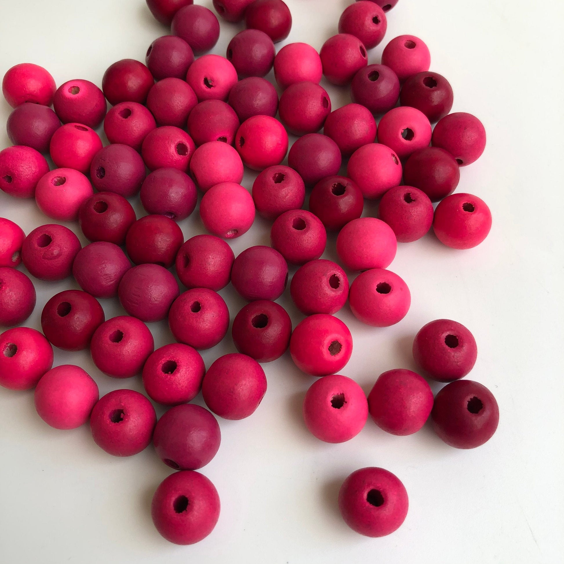 Mixed Matte Pinks Wood Bead 14mm Round Craft Beads 25 Pieces
