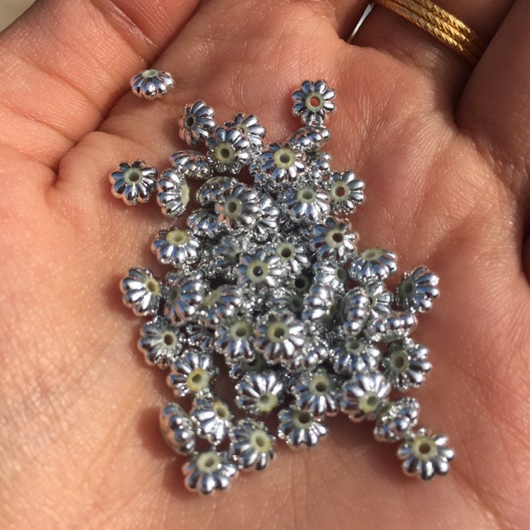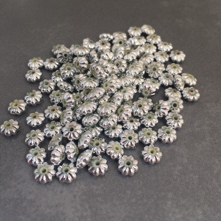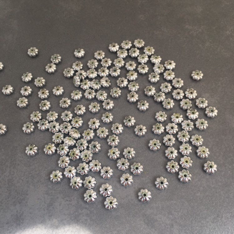 Silver Plastic Spacer Beads 6mm Flower Rondelle DIY Jewellery Making Craft Bead 150 Pieces
