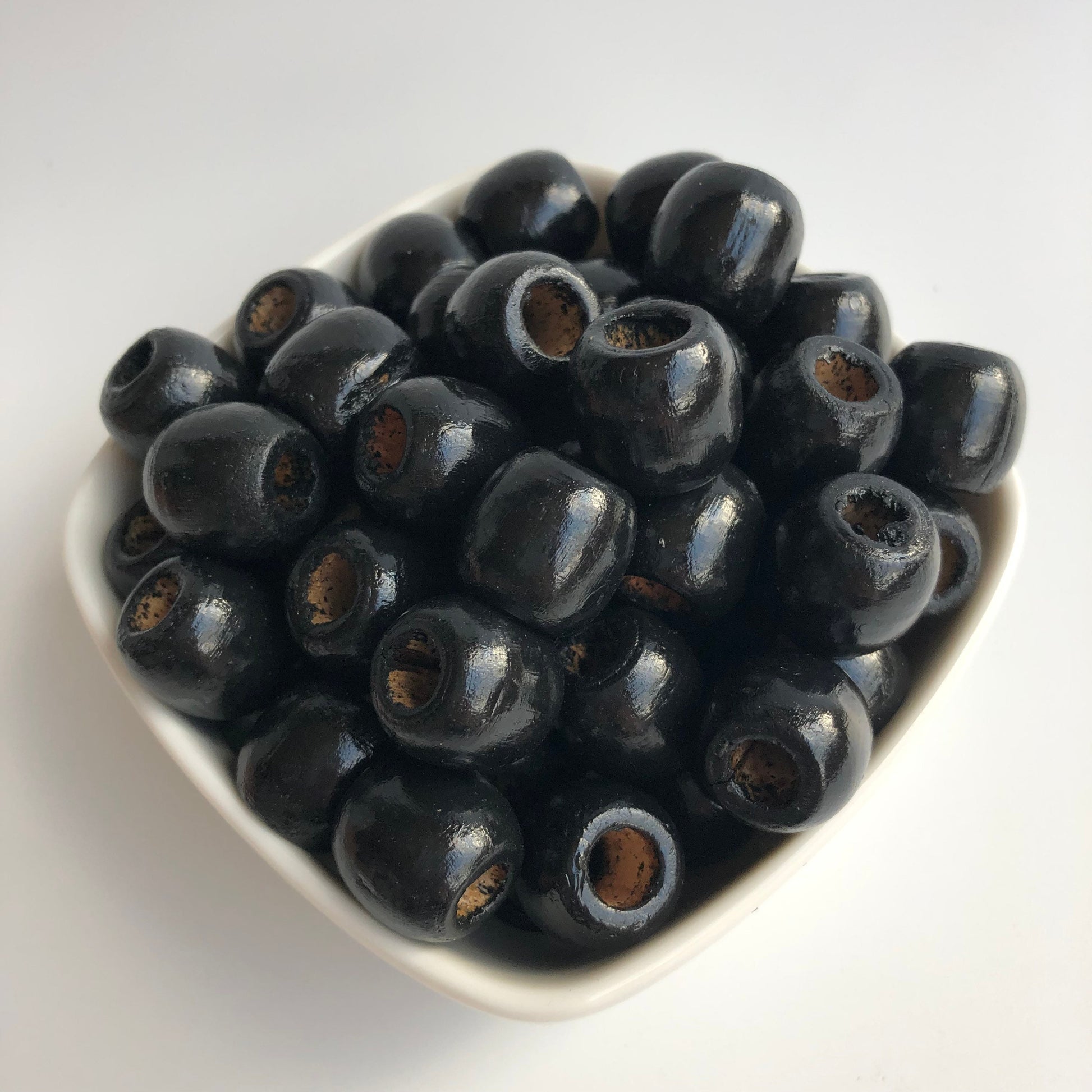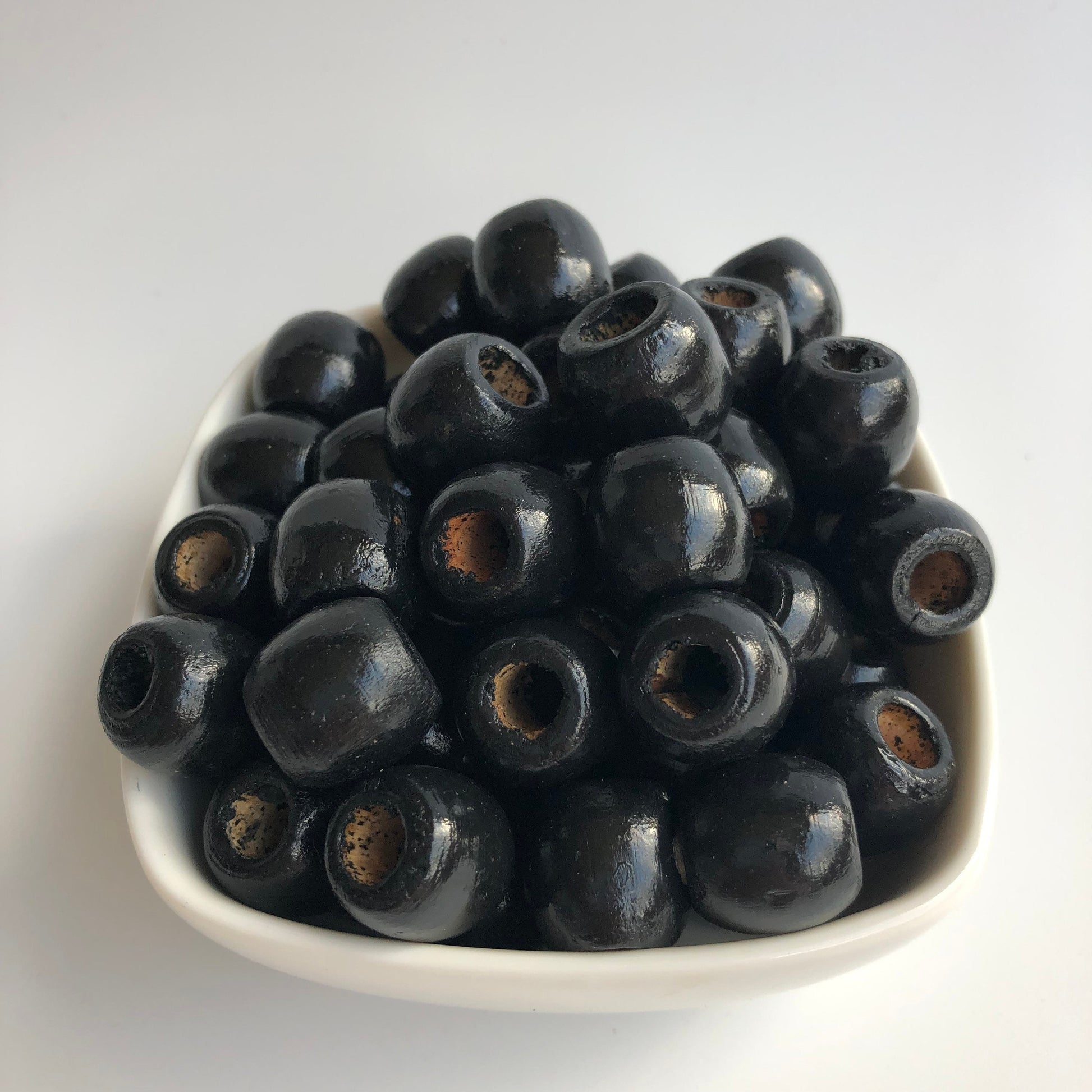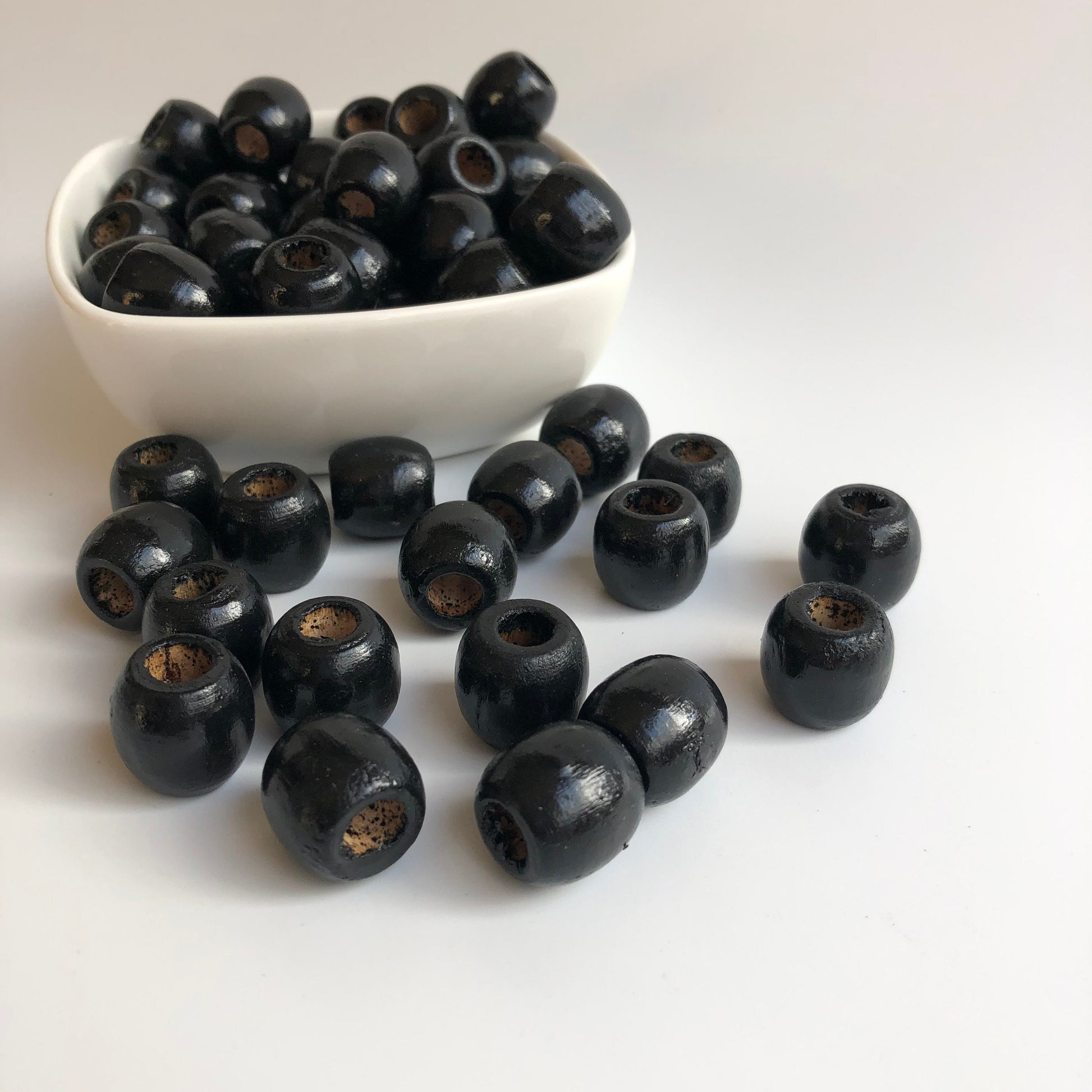 Black Macrame Wood Beads 16mm Round Drum Wooden Craft Dreadlock Bead 25 Pieces