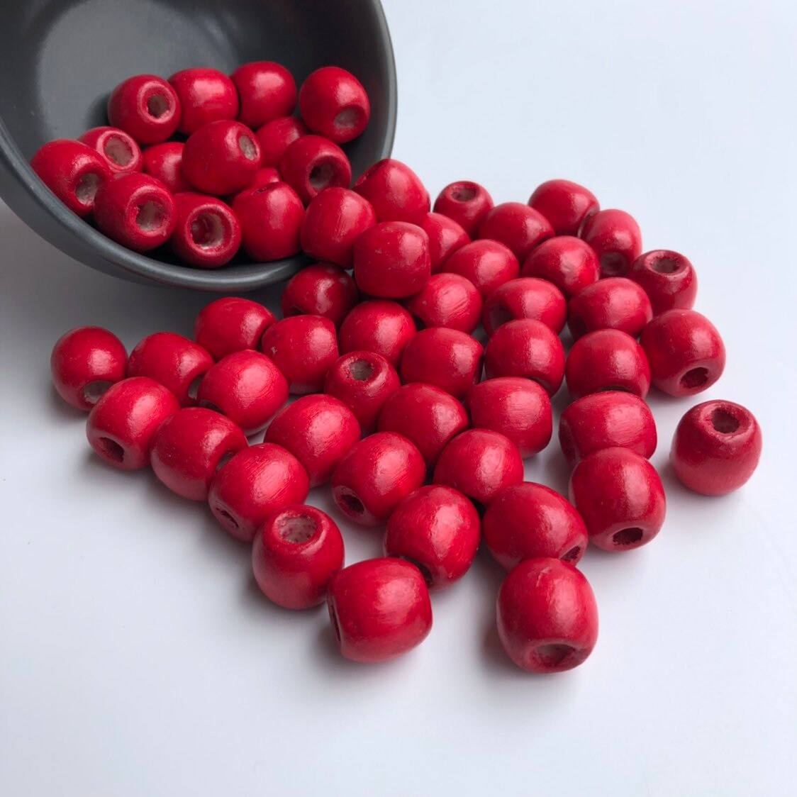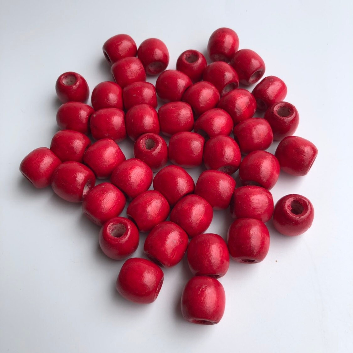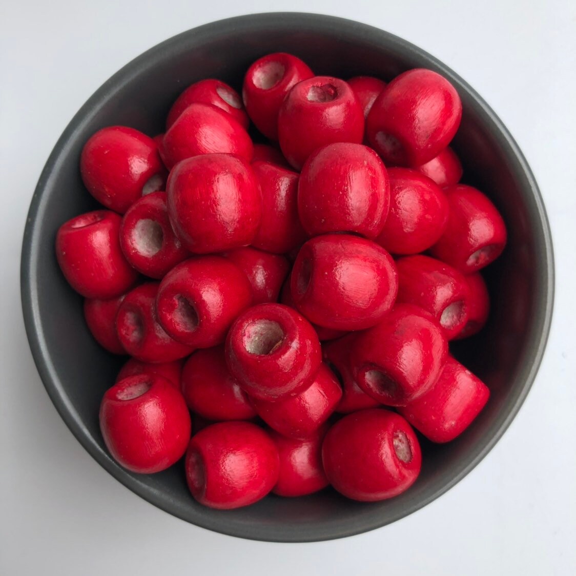 Red Macrame Wood Beads 16mm Round Drum Wooden Dreadlock Craft Bead 25 Pieces