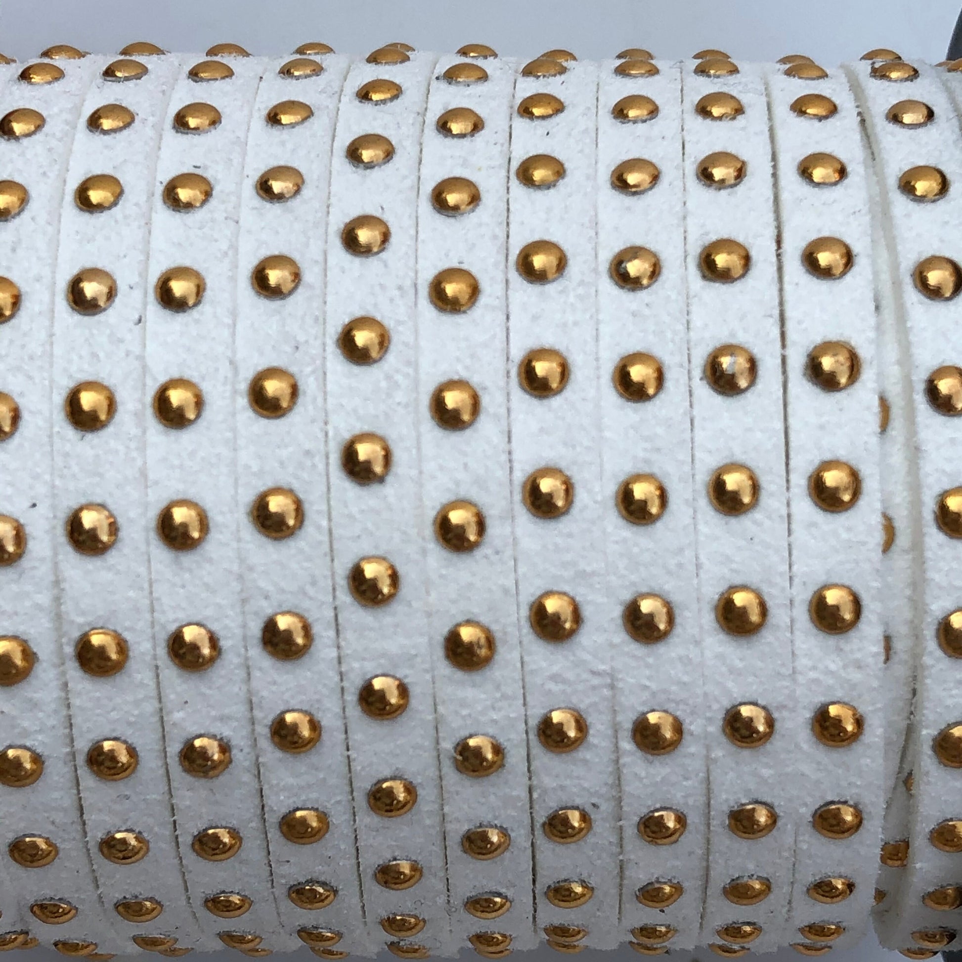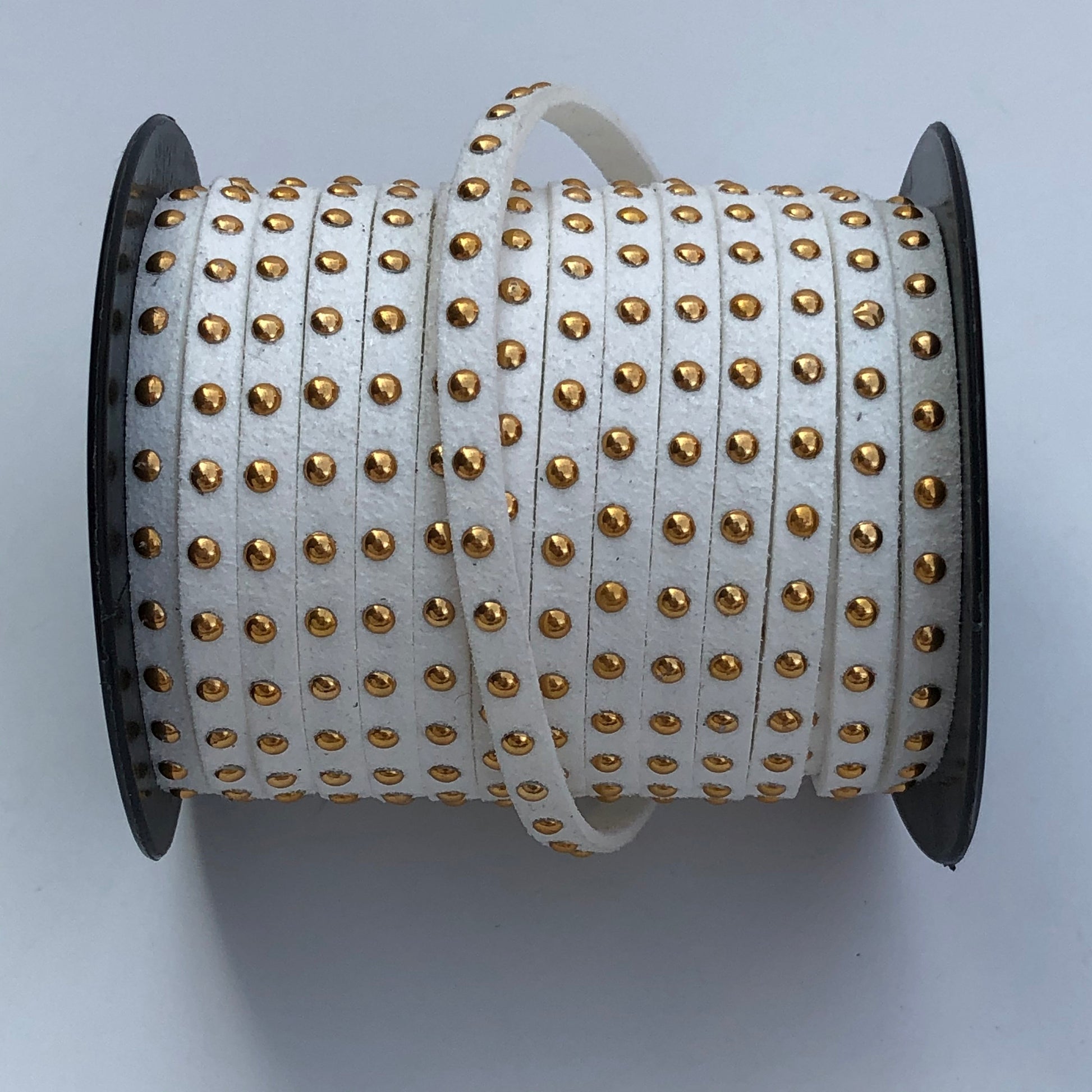 White Faux Suede Lace with Gold Studs 5mm Thich Flat Cord 1 Meter Long