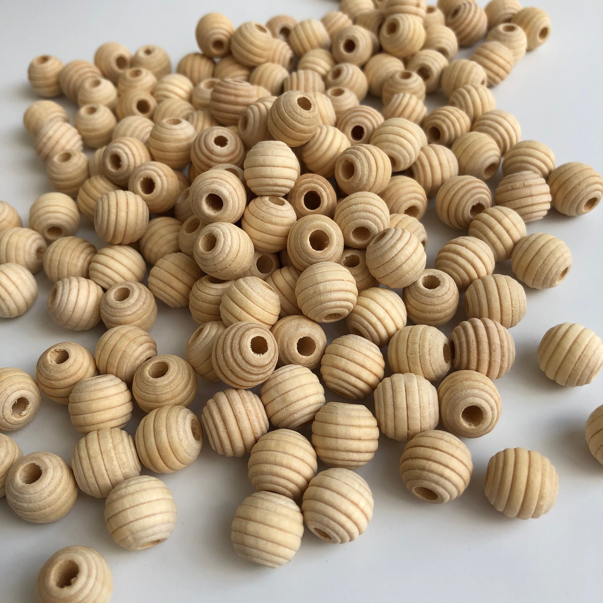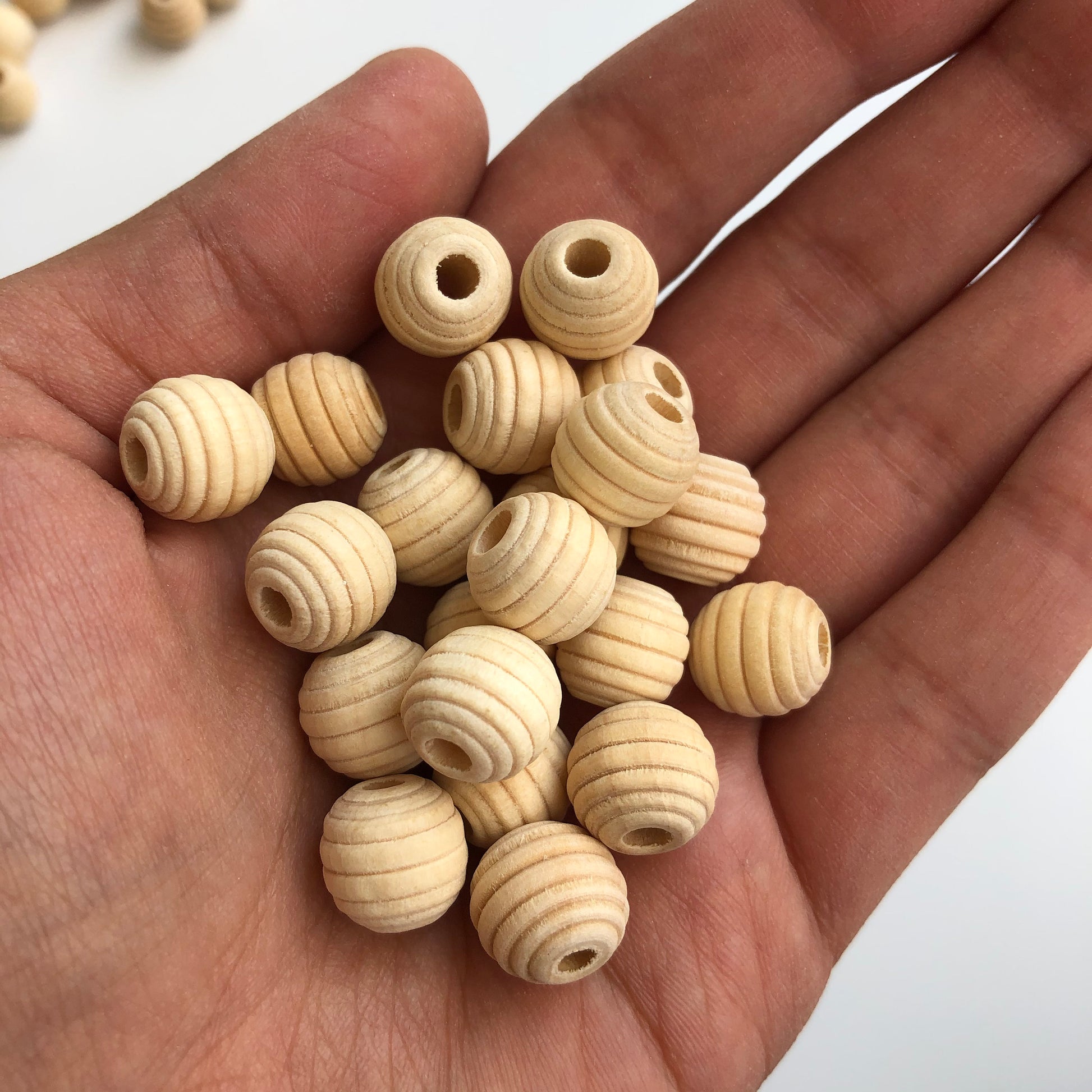 Natural Unpainted Spiral Wood Beads 12mm Round Beehive Craft Bead 20 Pieces