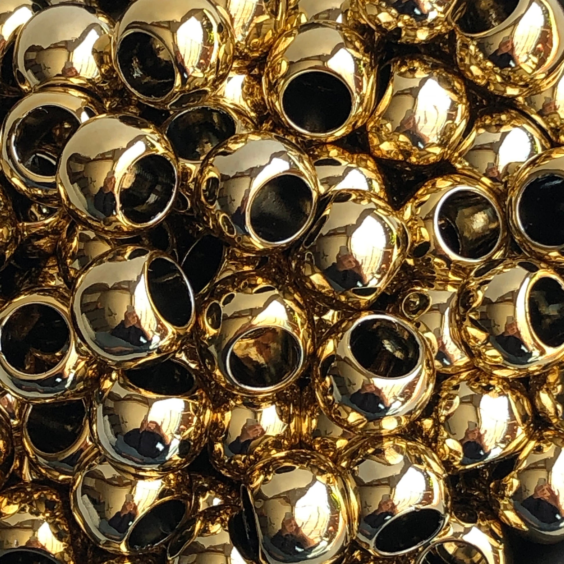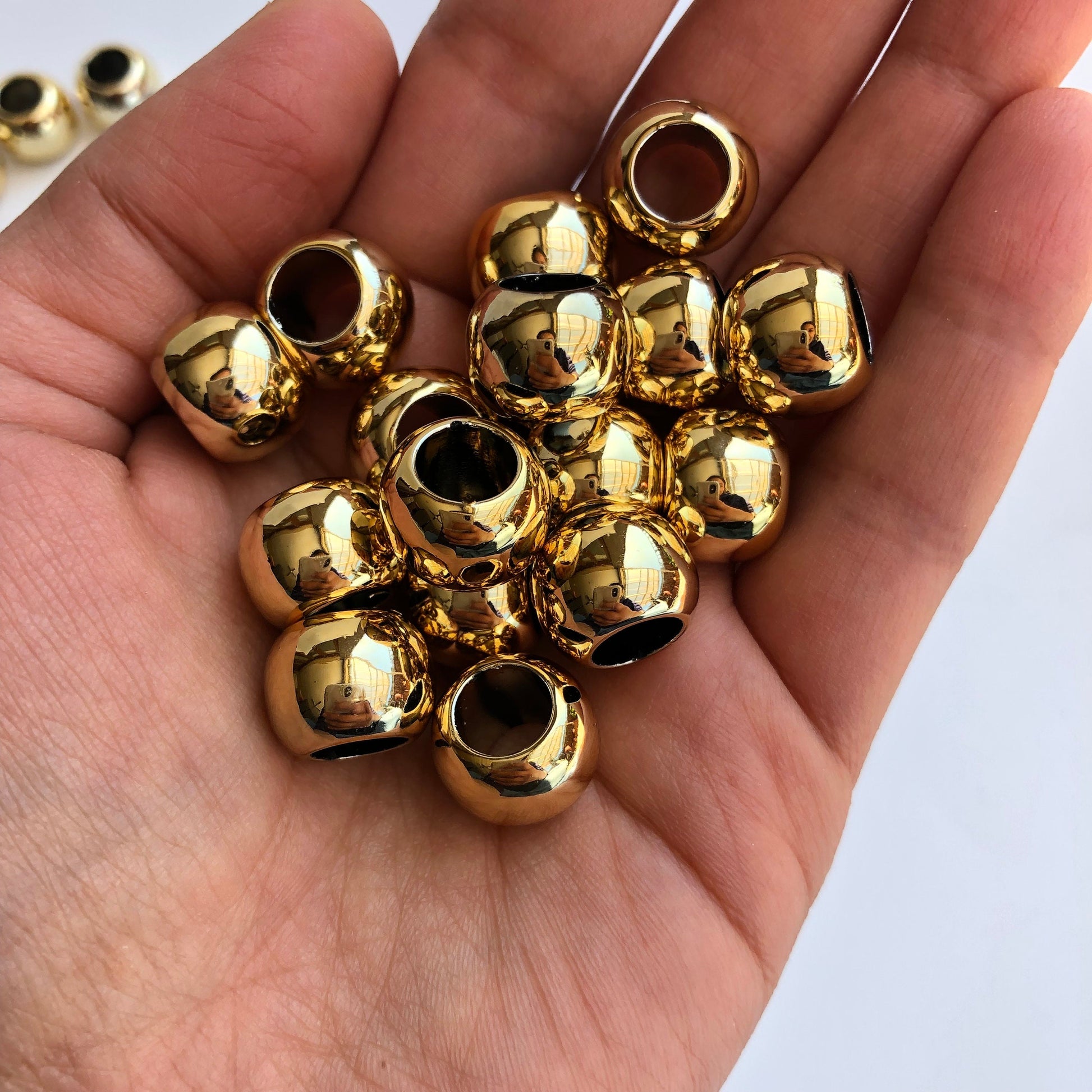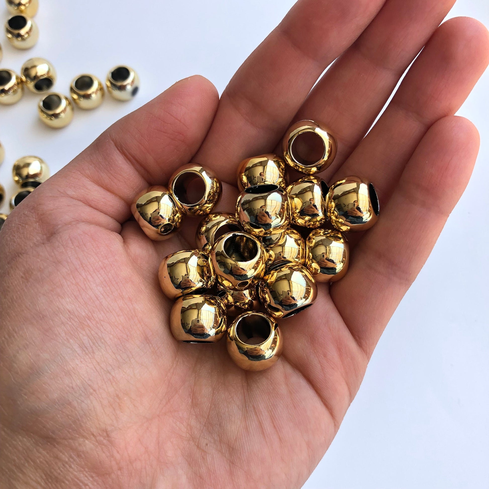 20 Shiny Gold Macrame Beads, 14mm Pony Bead, 7mm hole, Seamless Acrylic Craft Jewellery Making Bead