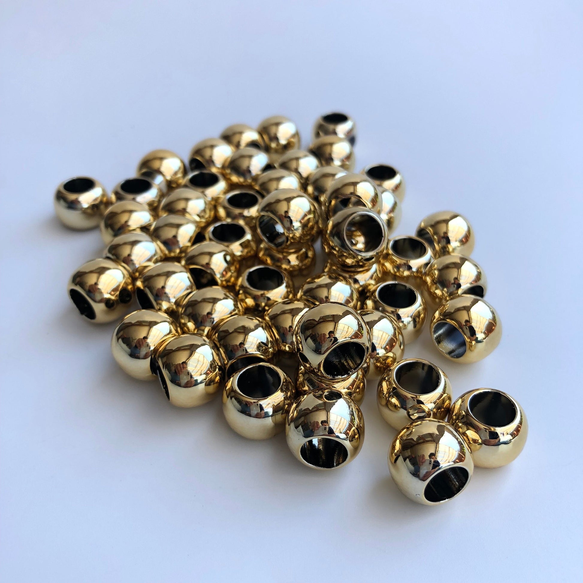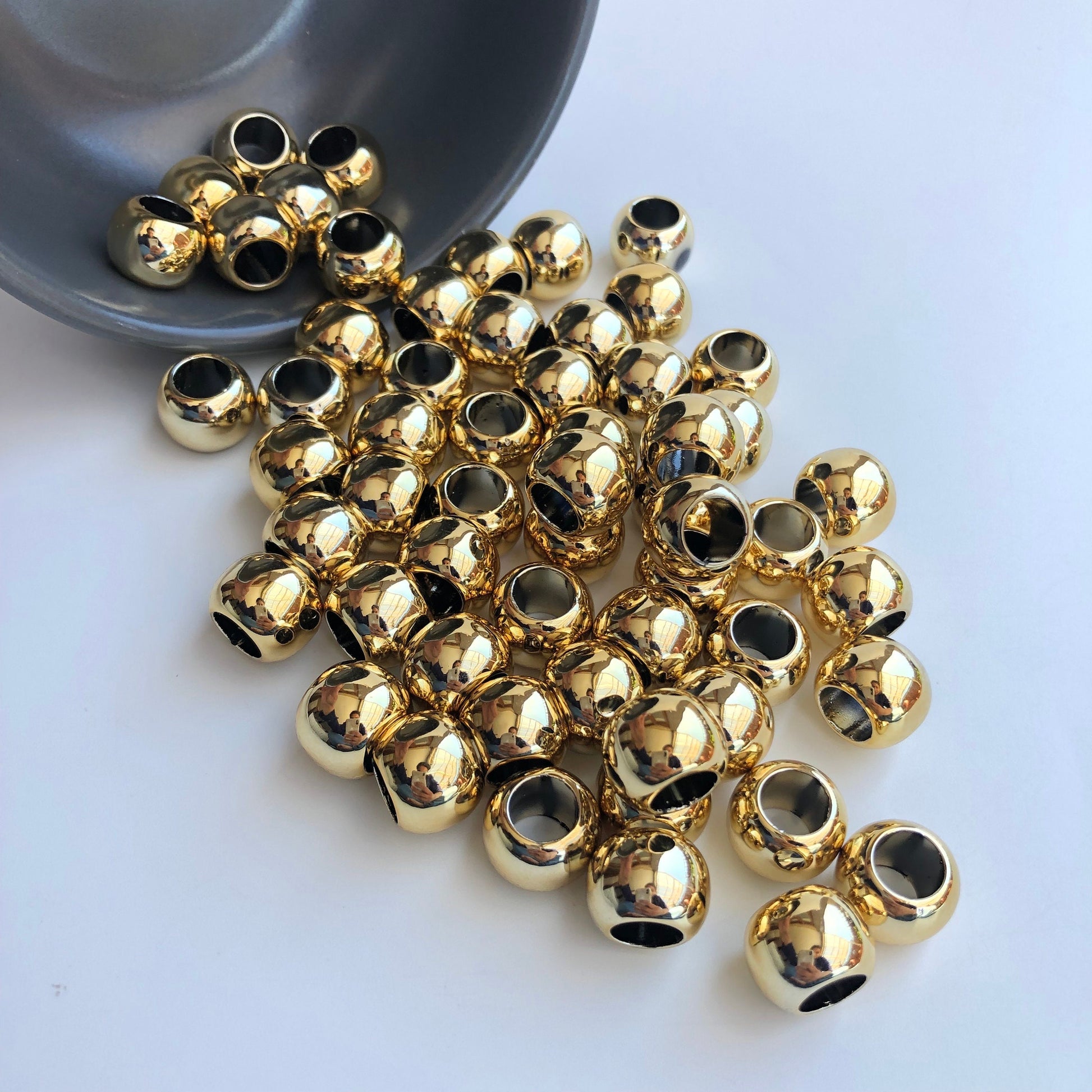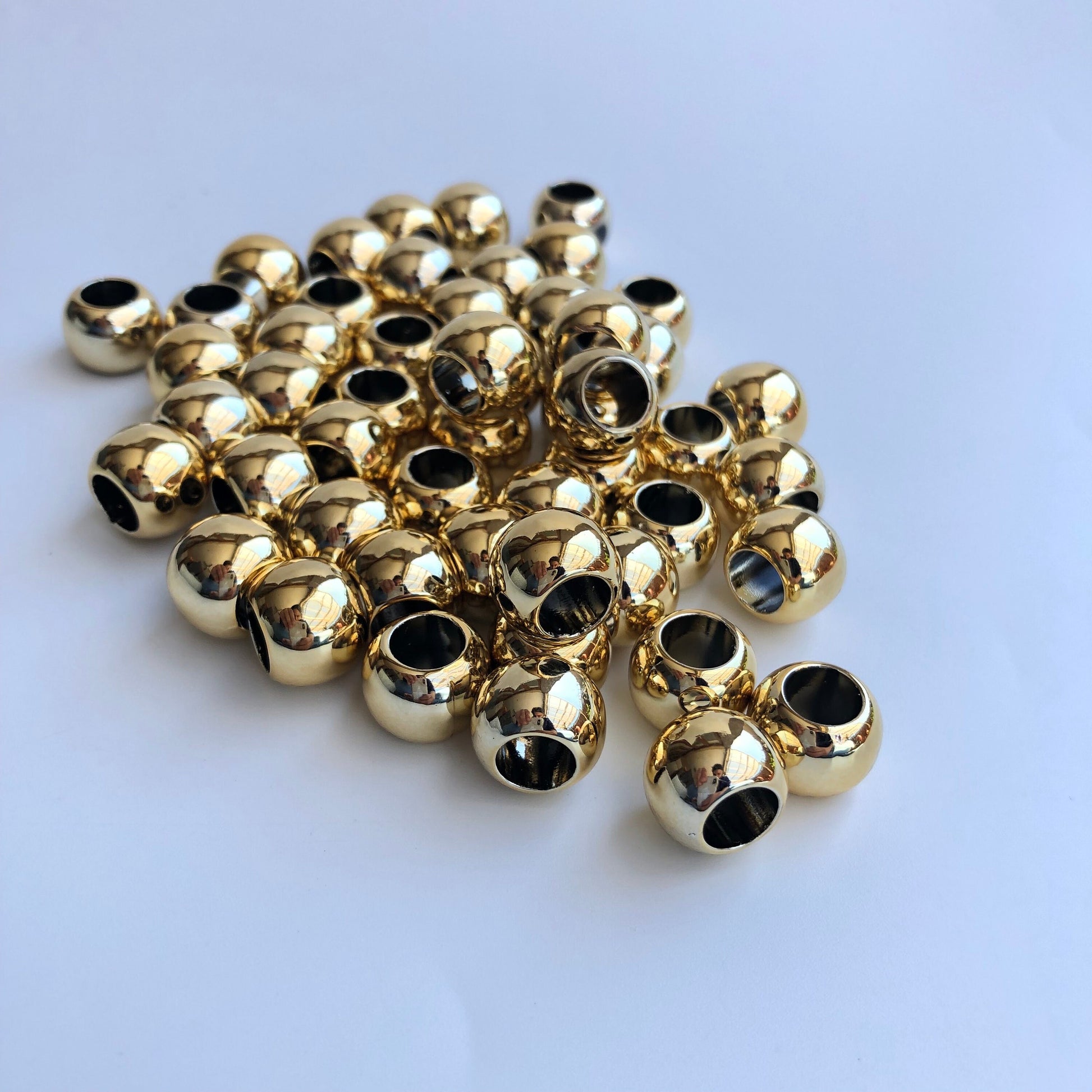 20 Shiny Gold Macrame Beads, 14mm Pony Bead, 7mm hole, Seamless Acrylic Craft Jewellery Making Bead