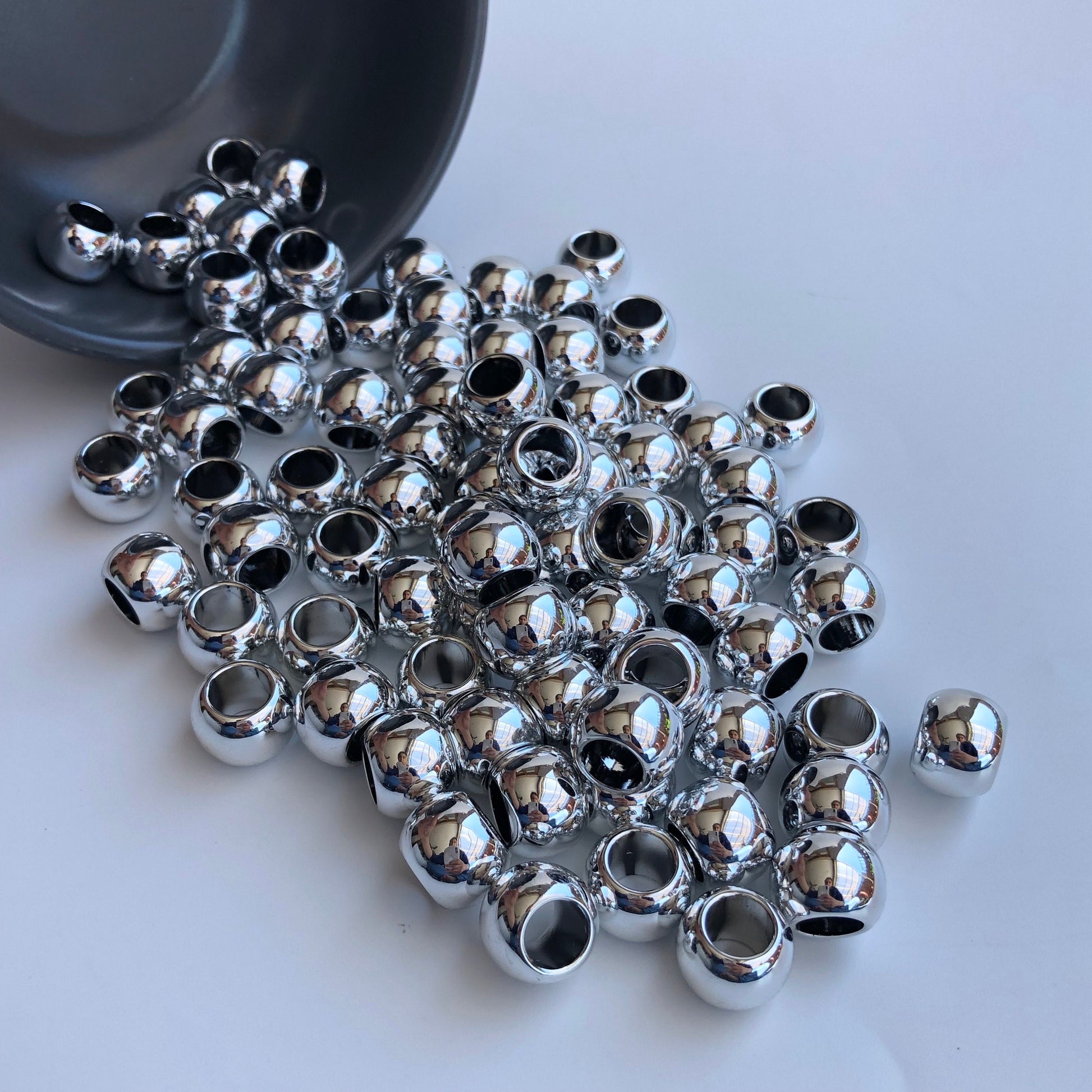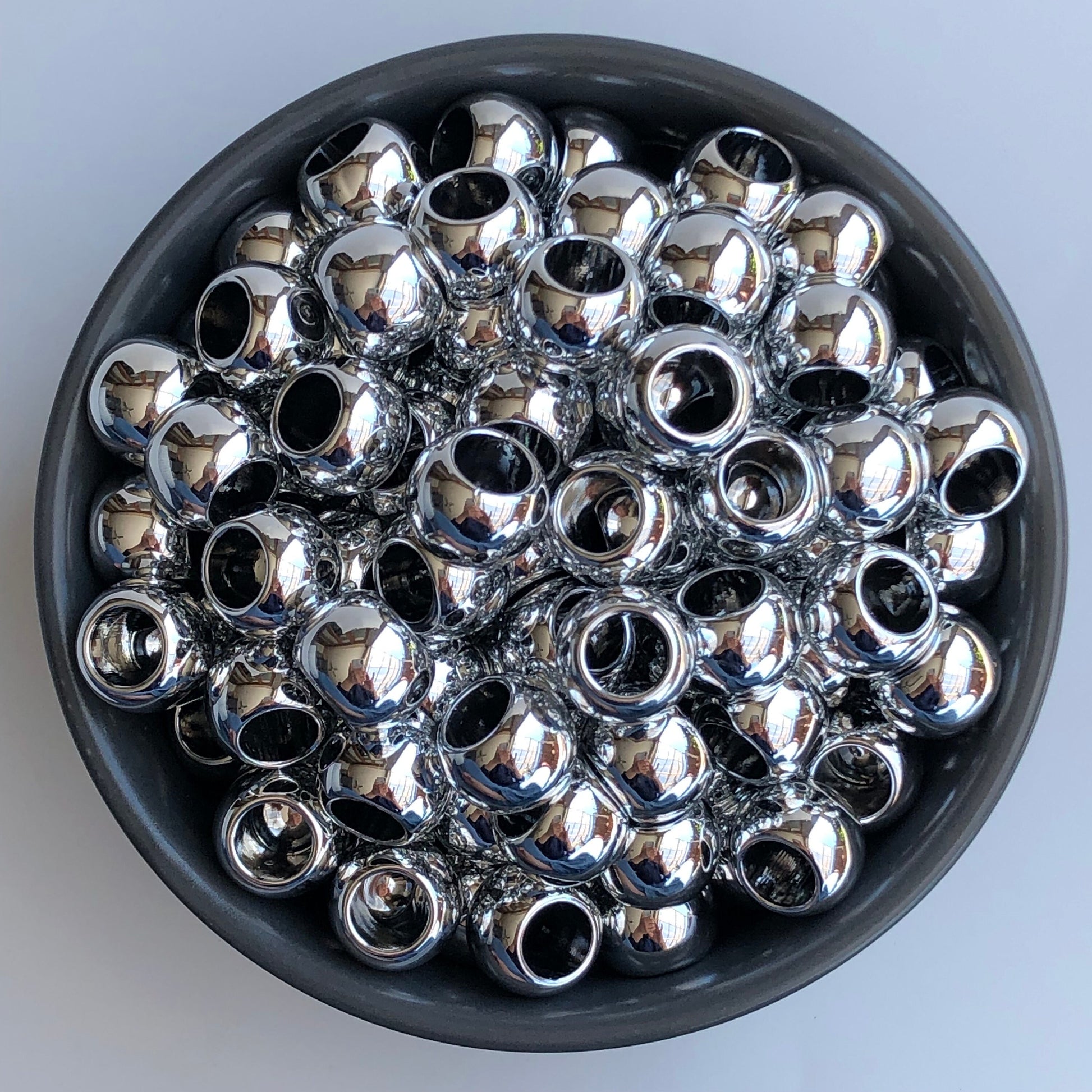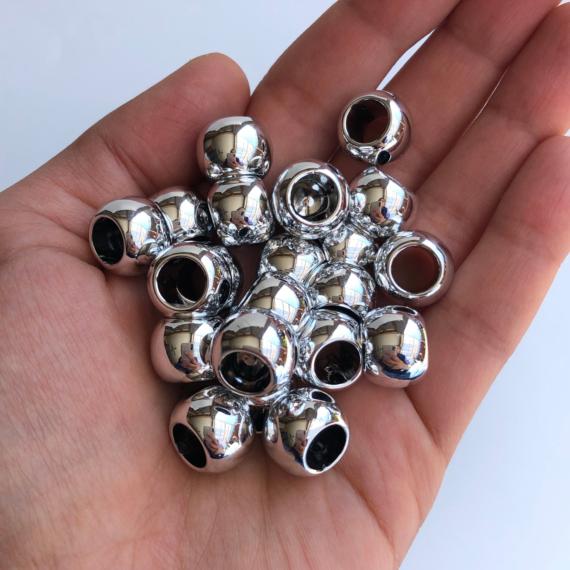 20 Shiny Silver Macrame Beads, 14mm Pony Bead, 7mm hole, Seamless Acrylic Craft Jewellery Making Bead