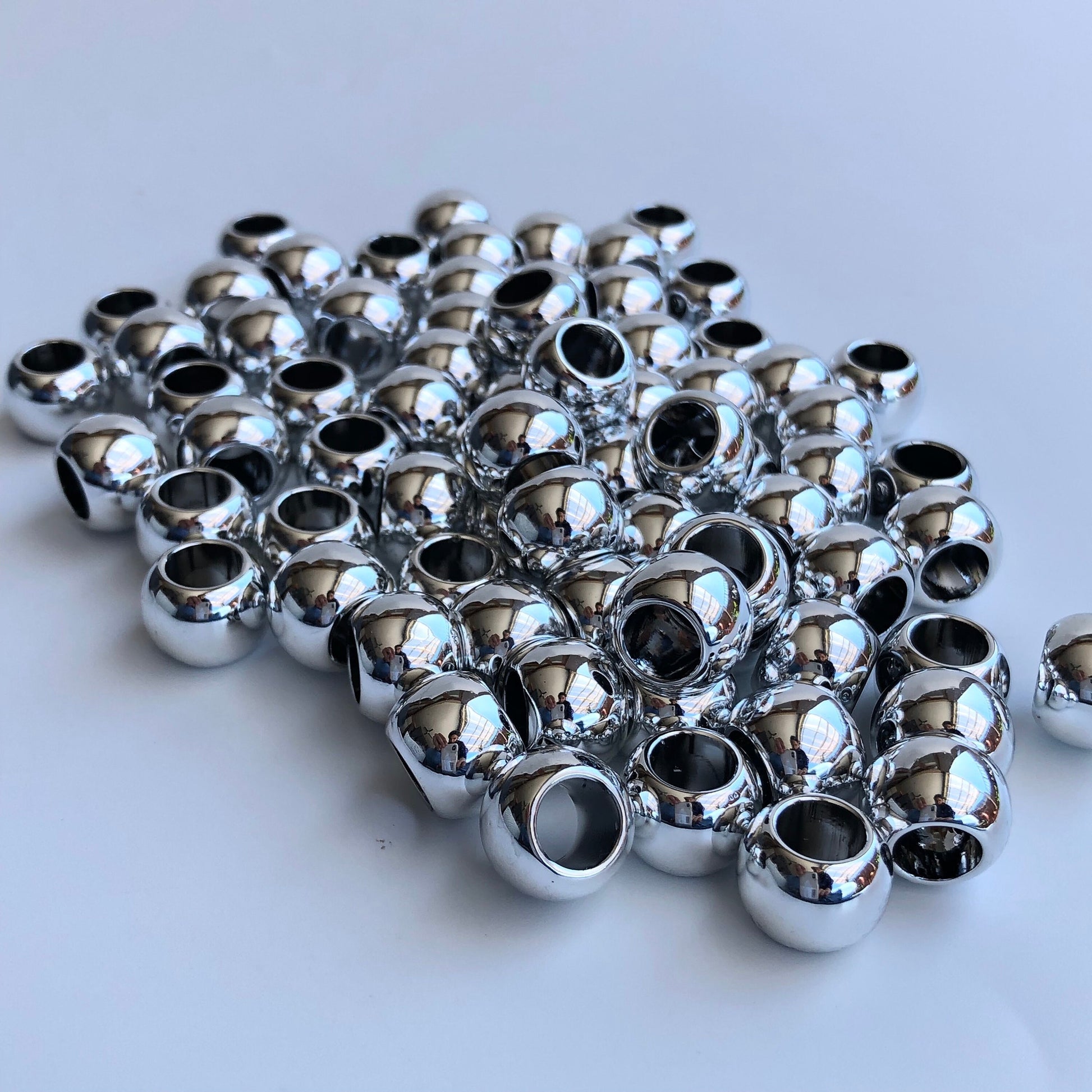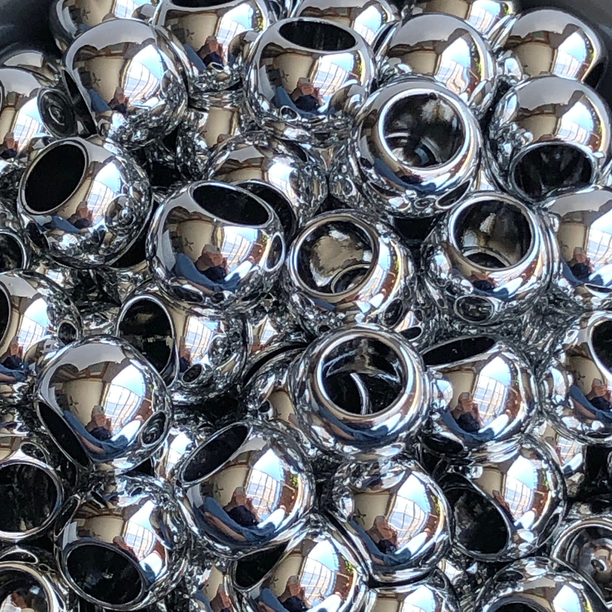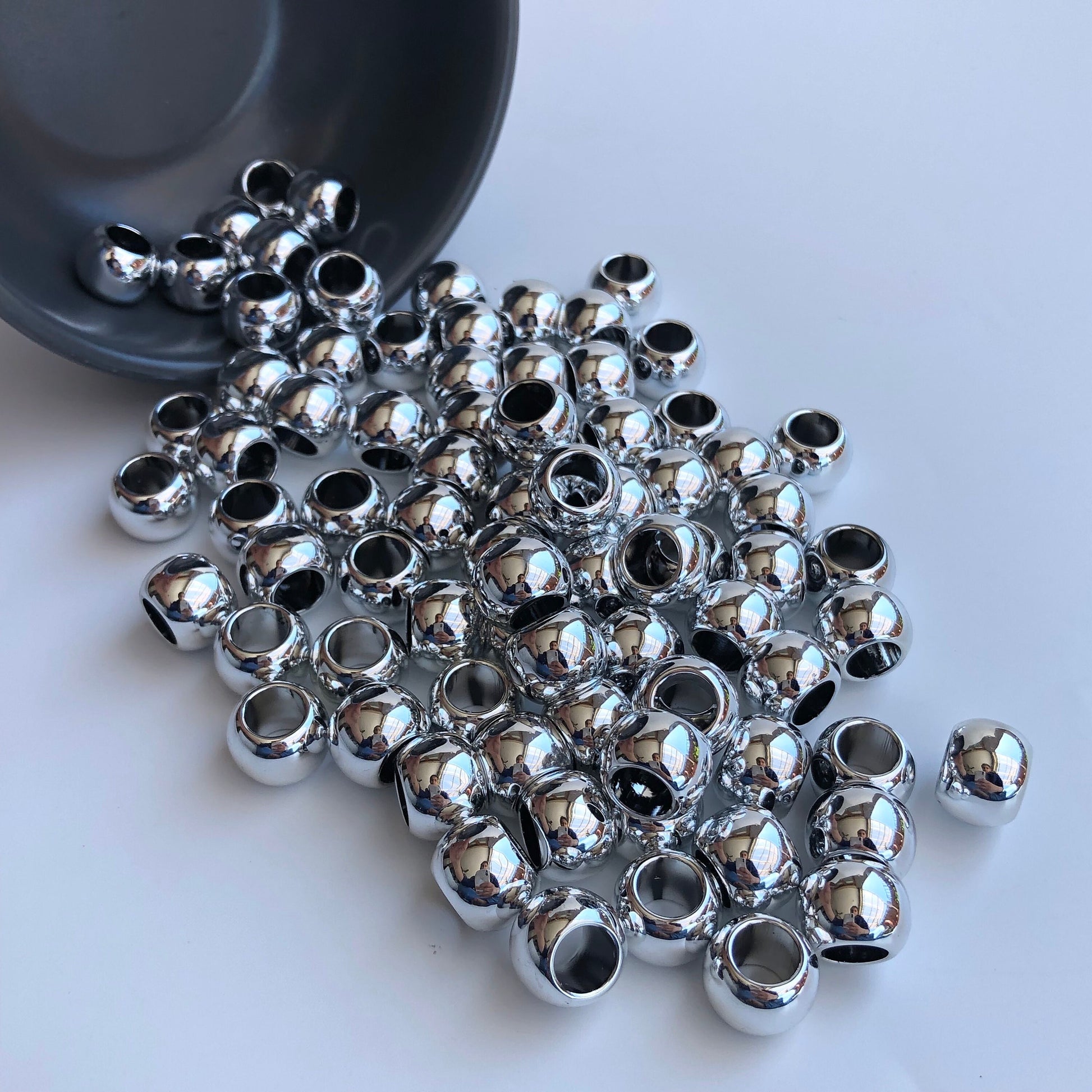 20 Shiny Silver Macrame Beads, 14mm Pony Bead, 7mm hole, Seamless Acrylic Craft Jewellery Making Bead