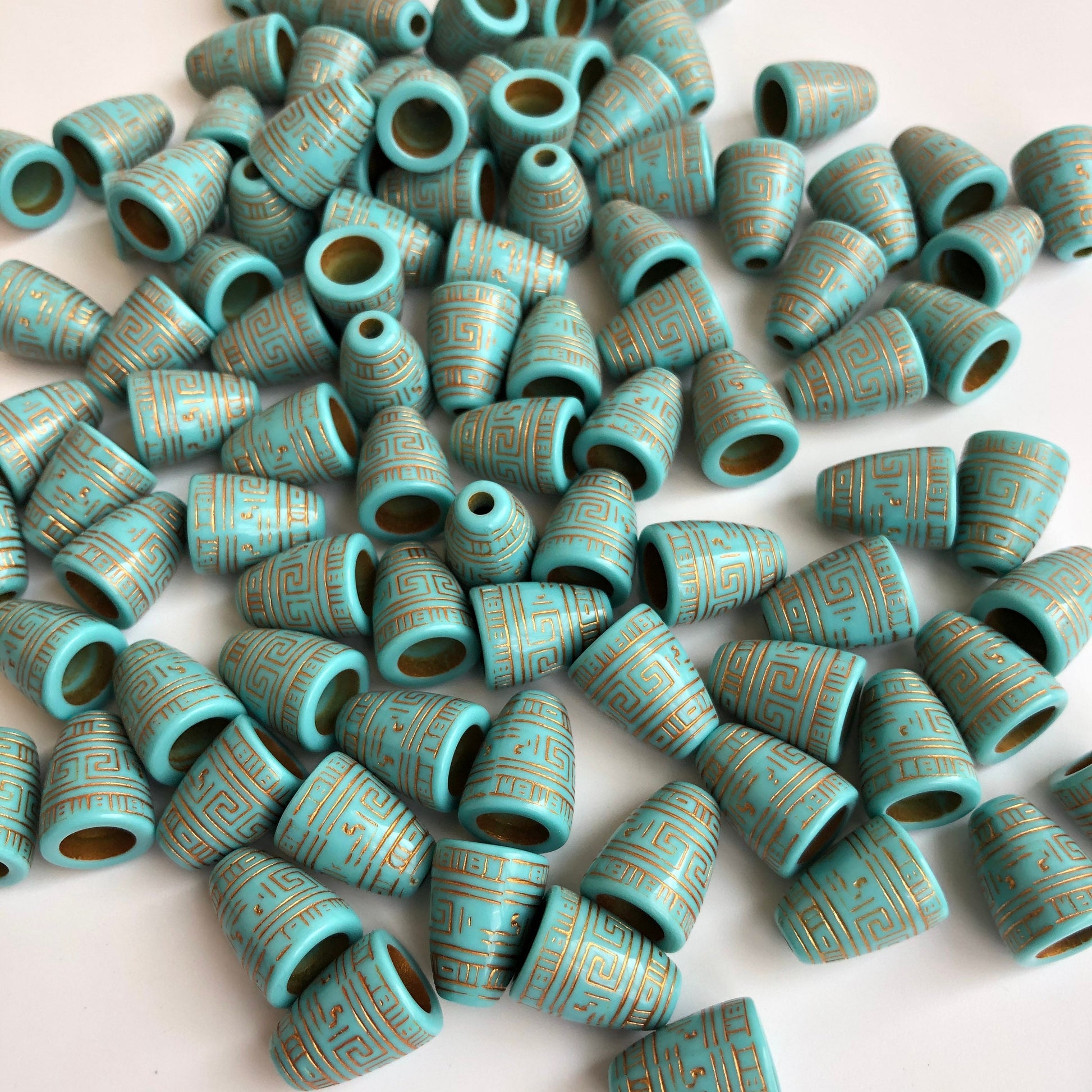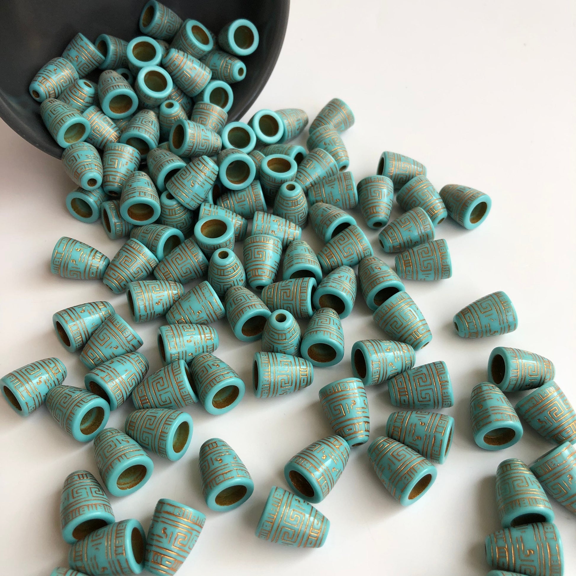 Turquoise Blue Bead Cone 16x12mm Acrylic Gold Etched Cord End Finding 20 Pieces
