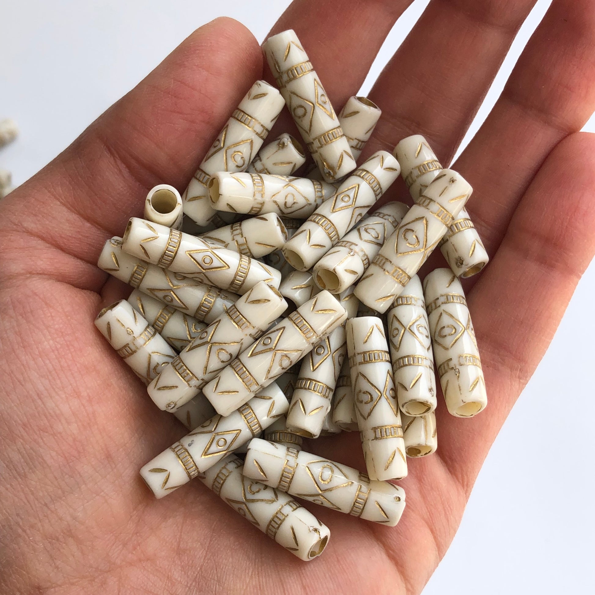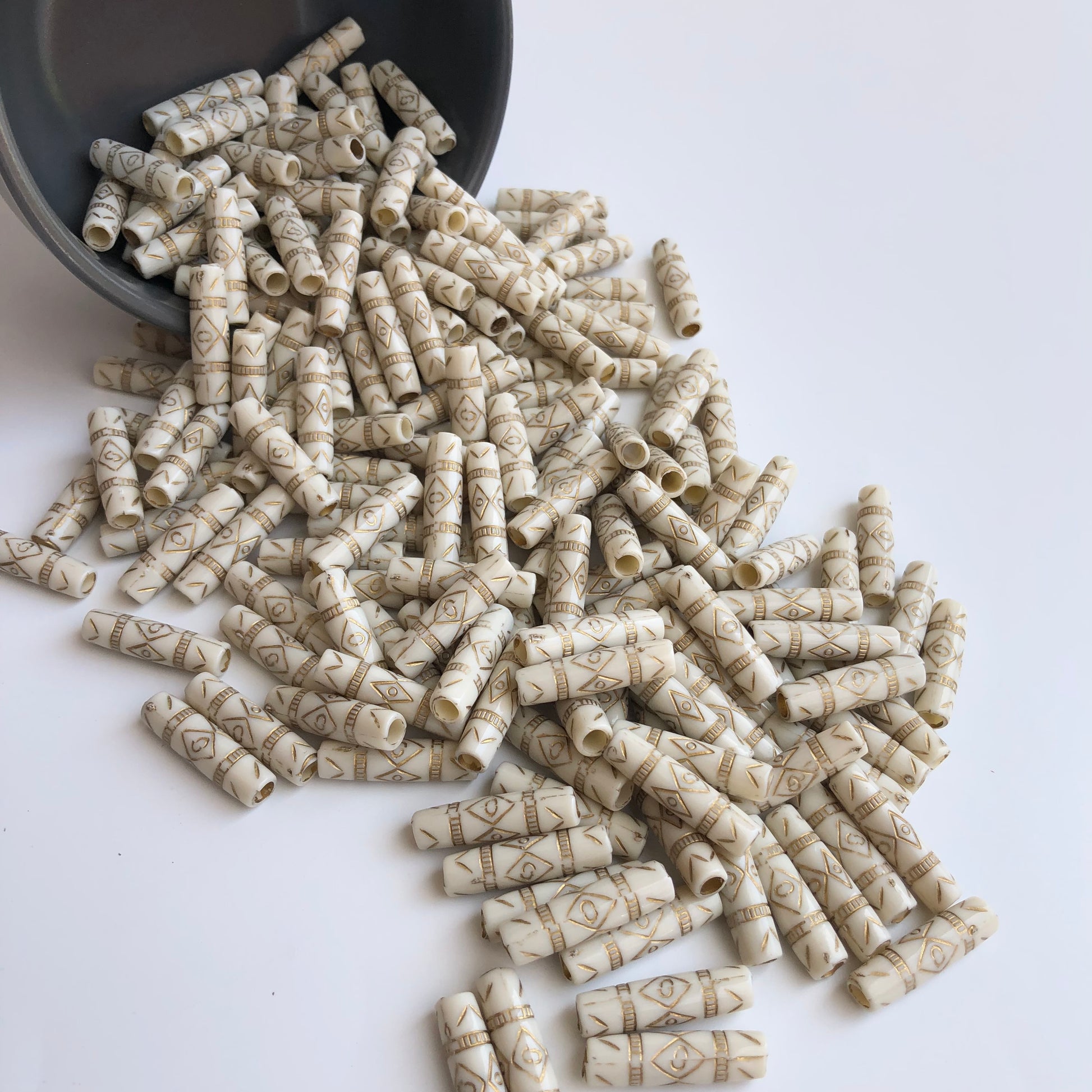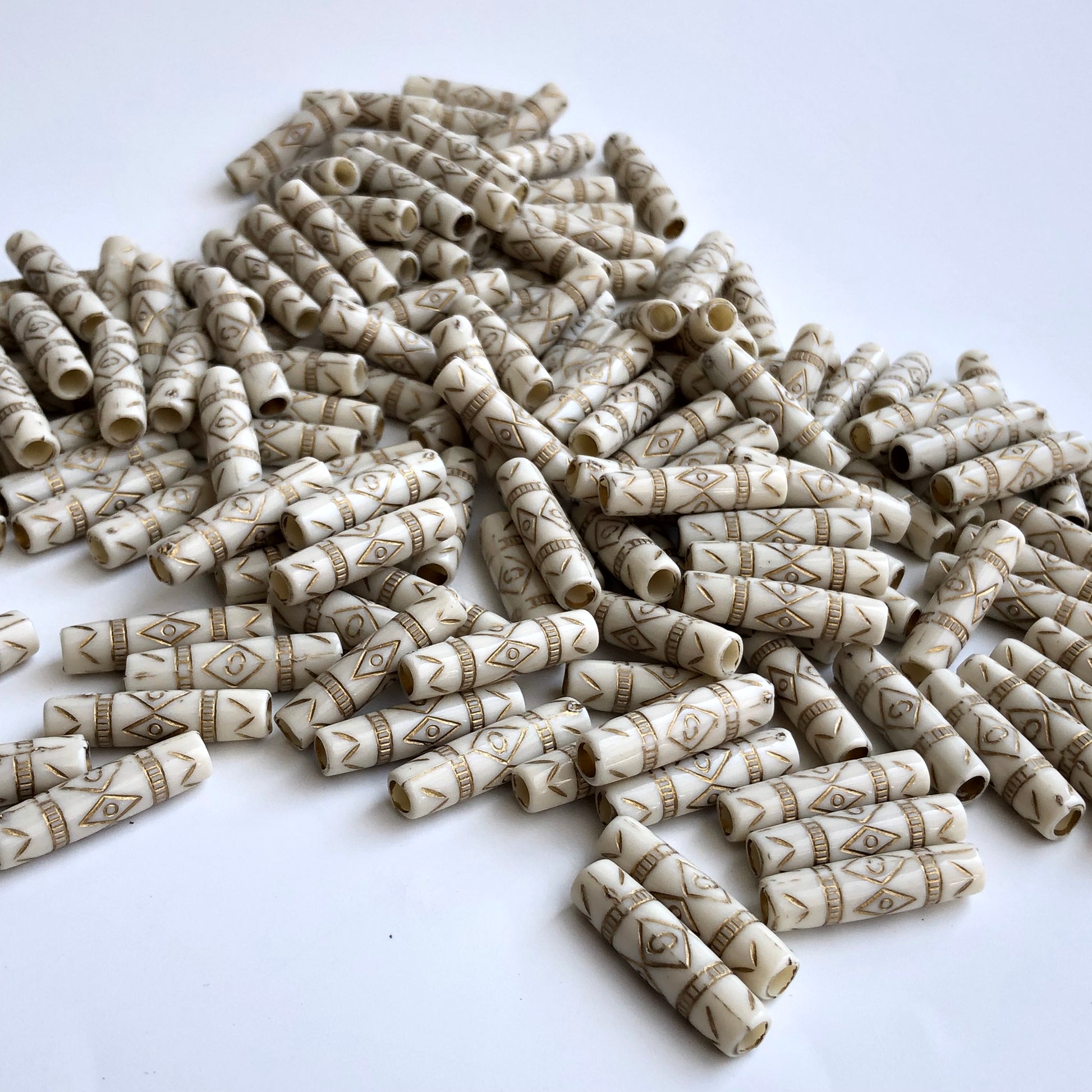 Antique Beige Beads 25x7mm Acrylic Plastic Tube Column Tribal Bead 20 Pieces