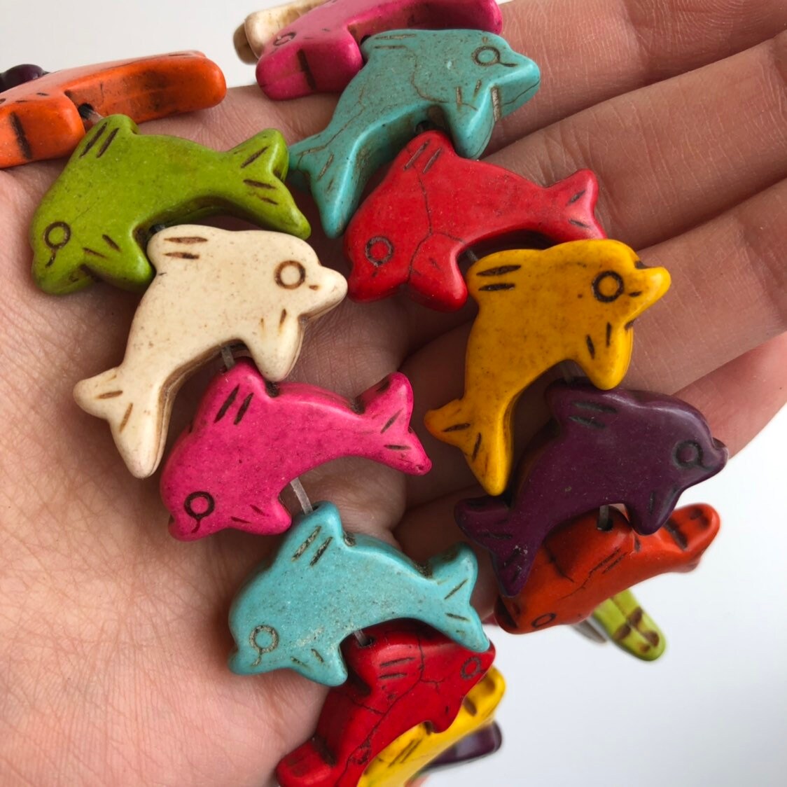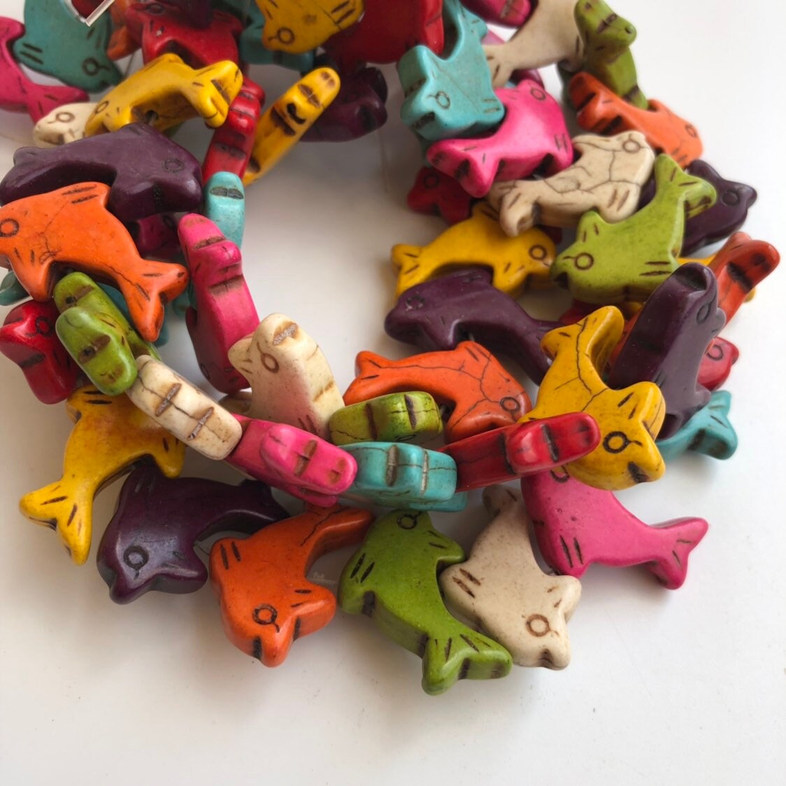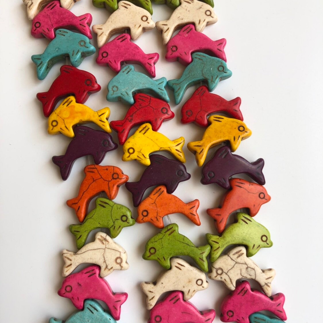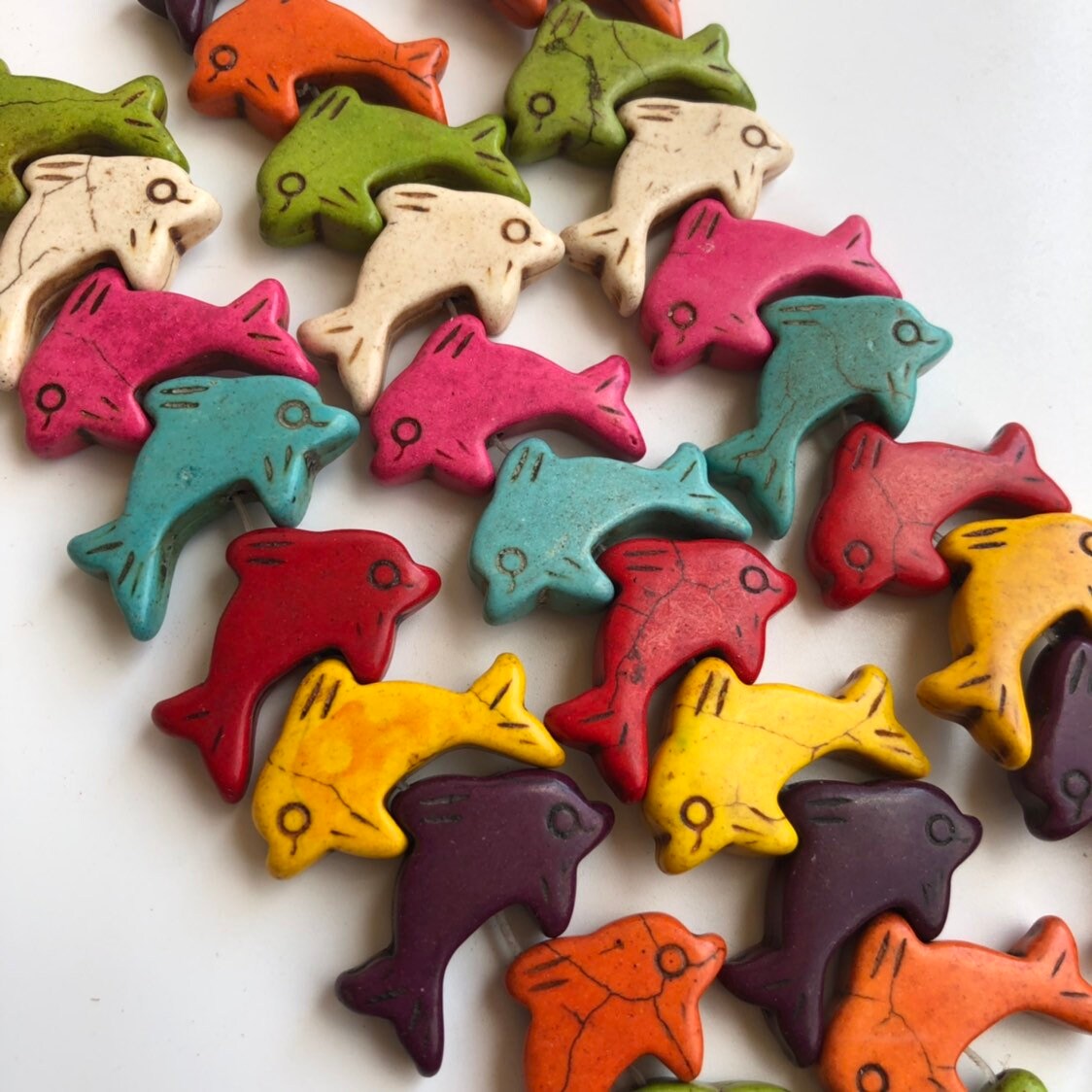 Dolphin Charm Bead 29x20mm Multi Colour Gemstone Beads 39cm Strand 24 Pieces
